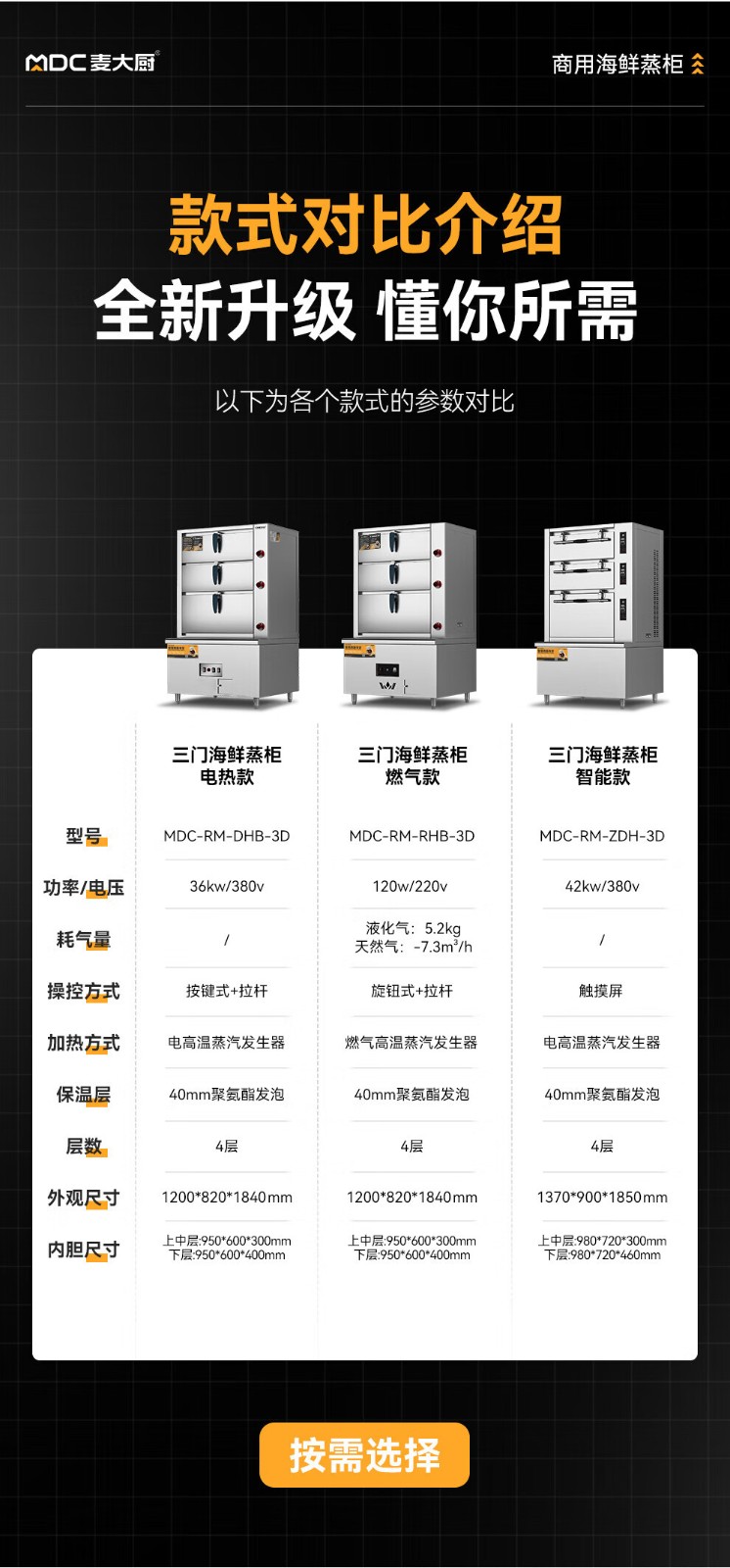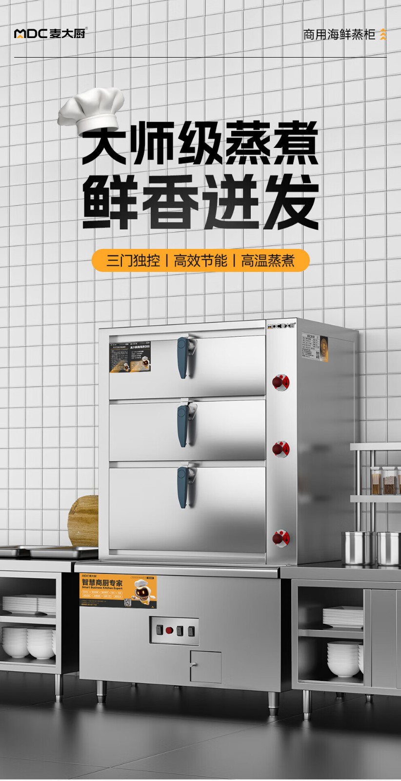 麥大廚商用蒸柜1000mm電熱款三門海鮮蒸柜