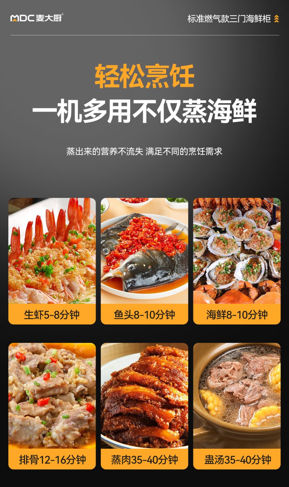 麥大廚商用蒸柜1000mm標(biāo)準(zhǔn)燃?xì)饪钊T海鮮蒸柜