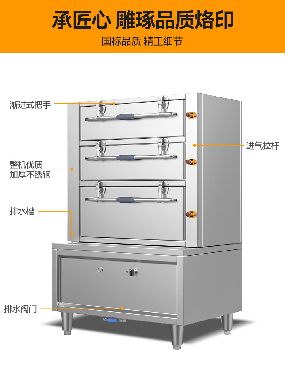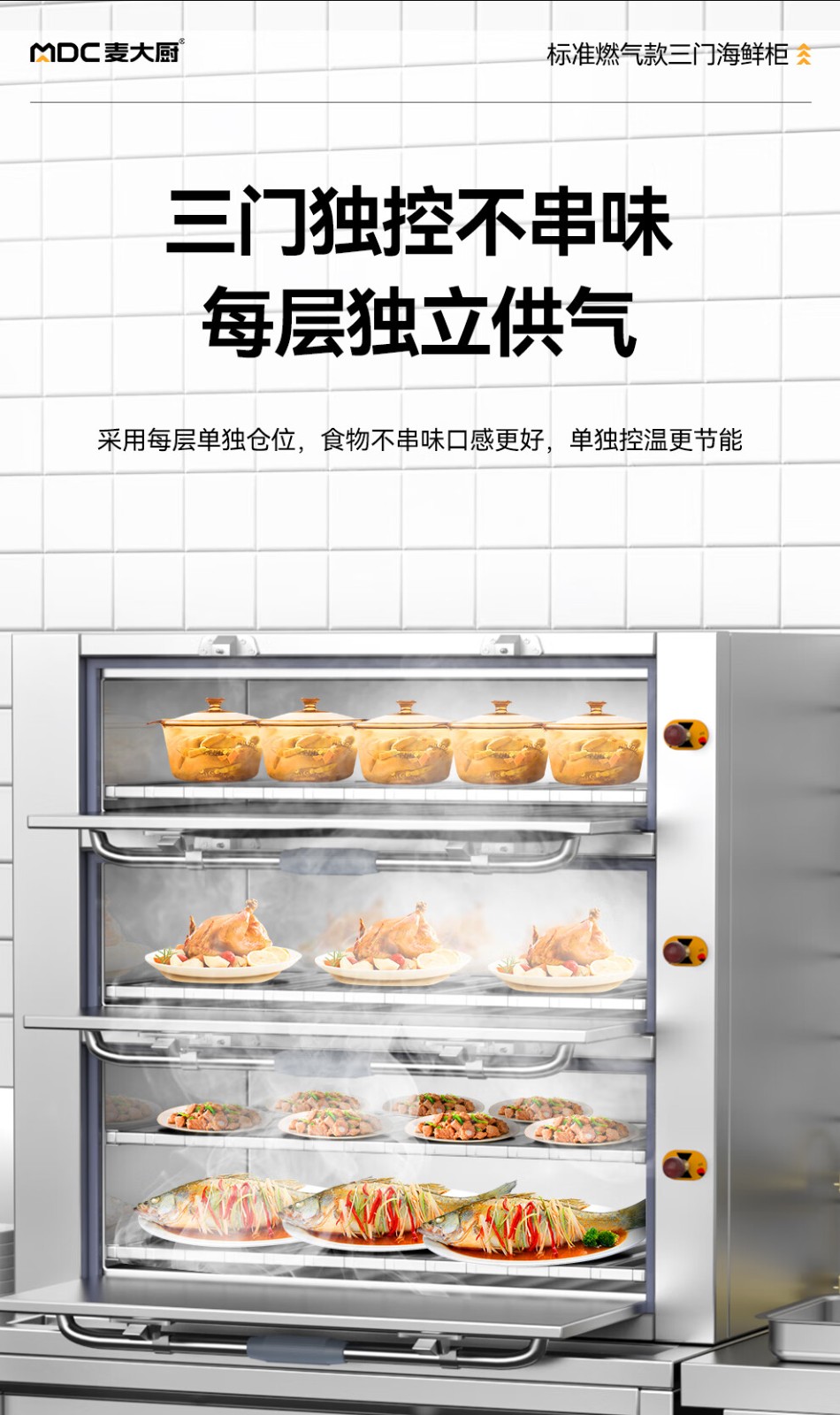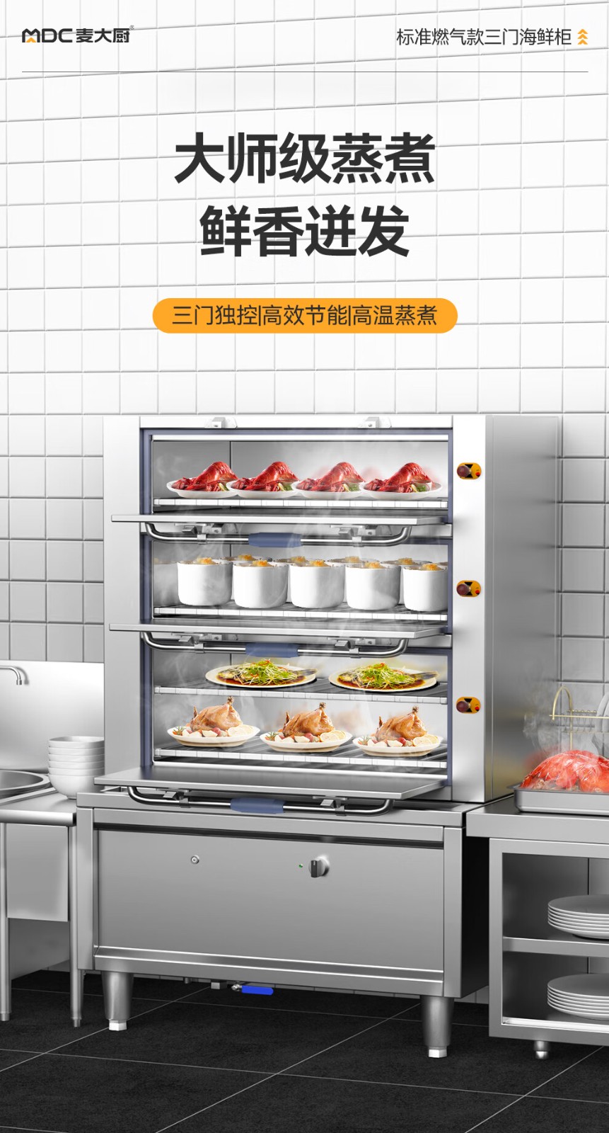 麥大廚商用蒸柜1100mm標(biāo)準(zhǔn)燃?xì)饪钊T海鮮蒸柜