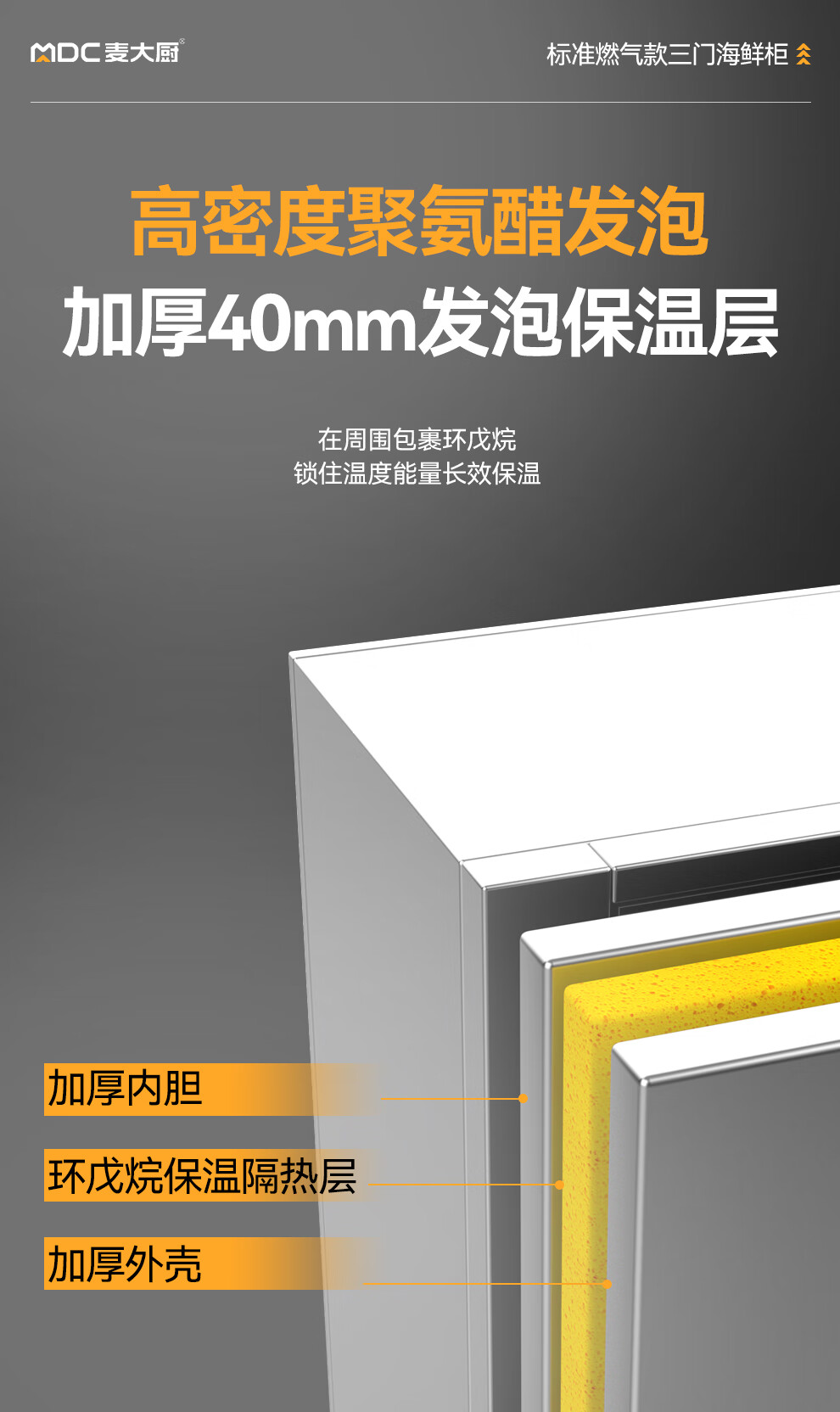 發(fā)泡層:40mm環(huán)戊烷