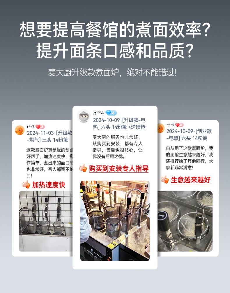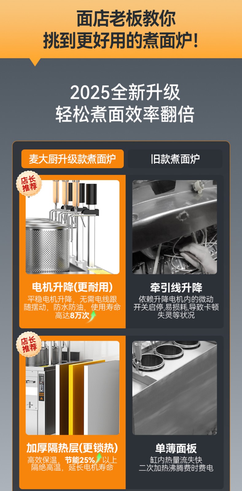 麥大廚創(chuàng)業(yè)款電熱6頭14粉籬自動(dòng)煮面爐商用