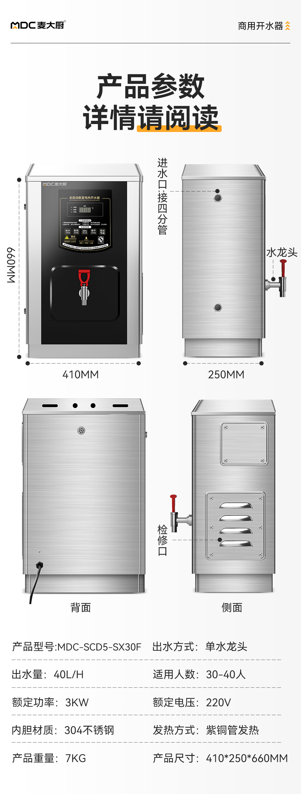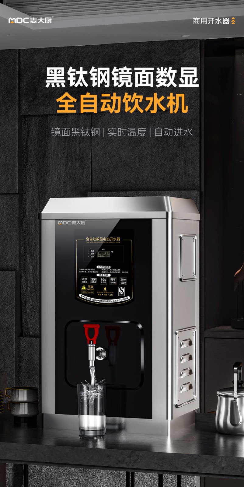 麥大廚黑鈦鋼數(shù)顯升級(jí)款速熱開(kāi)水器商用MDC-SCD5-SX30F