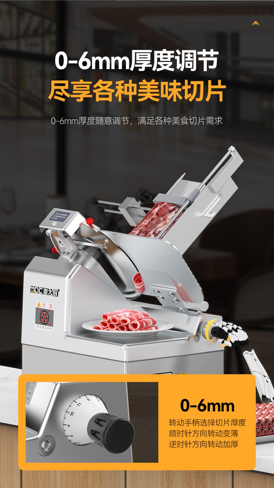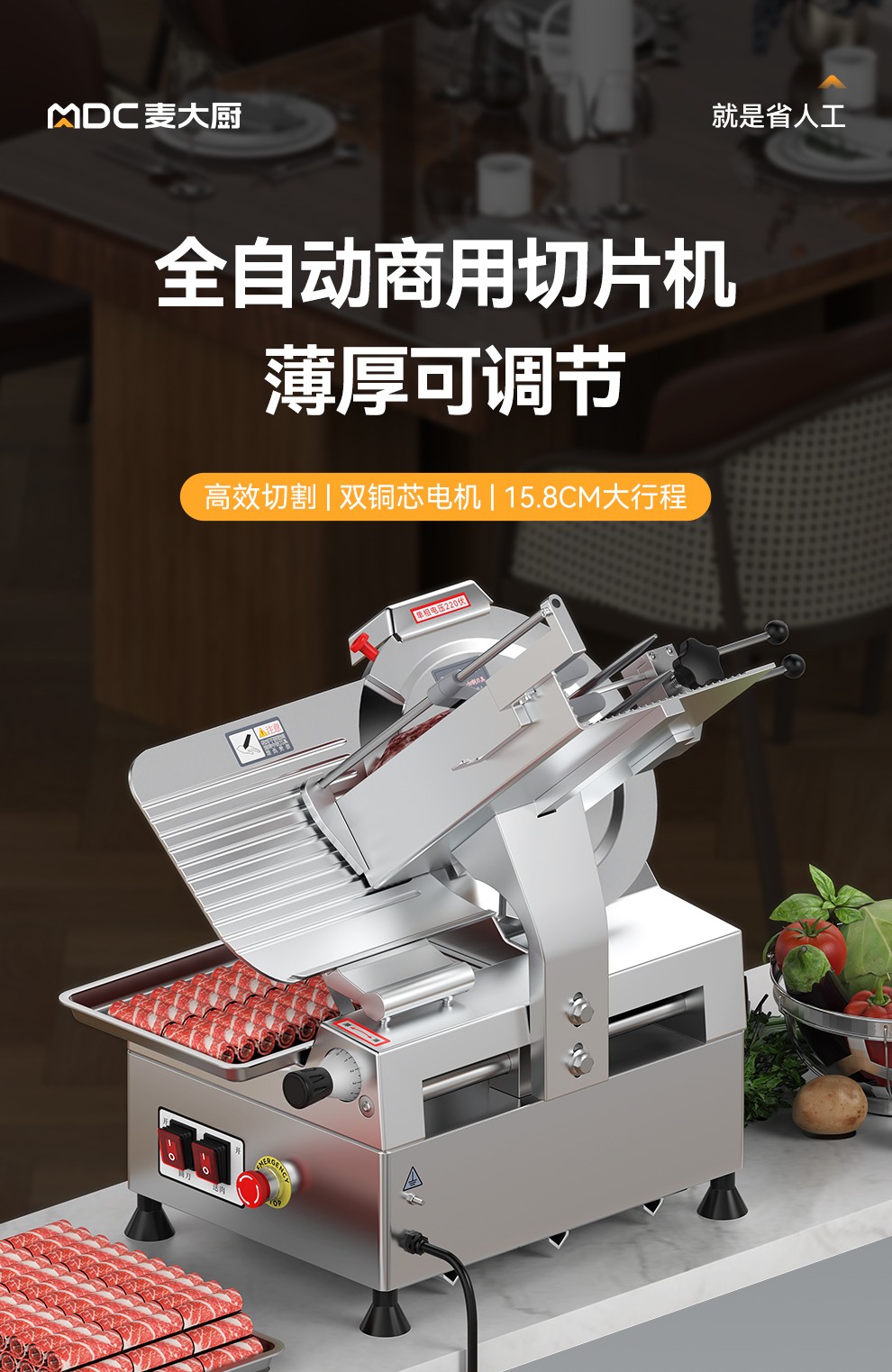 麥大廚切牛肉羊肉片專用12寸臺式全自動商用切片機