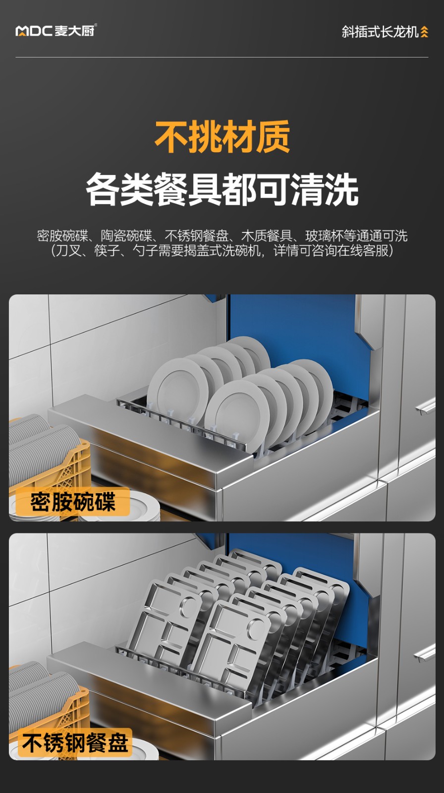 首頁 > 商廚產(chǎn)品 > 洗碗機(jī) > 斜插式洗碗機(jī) >麥大廚豪華款4.6m斜插式雙缸雙噴淋單烘干洗碗機(jī)商用