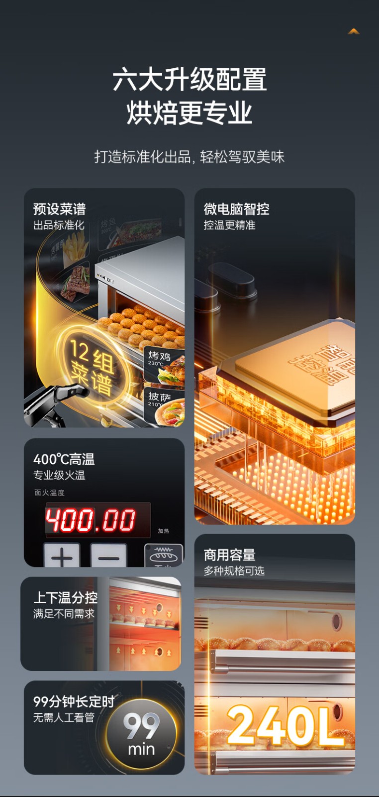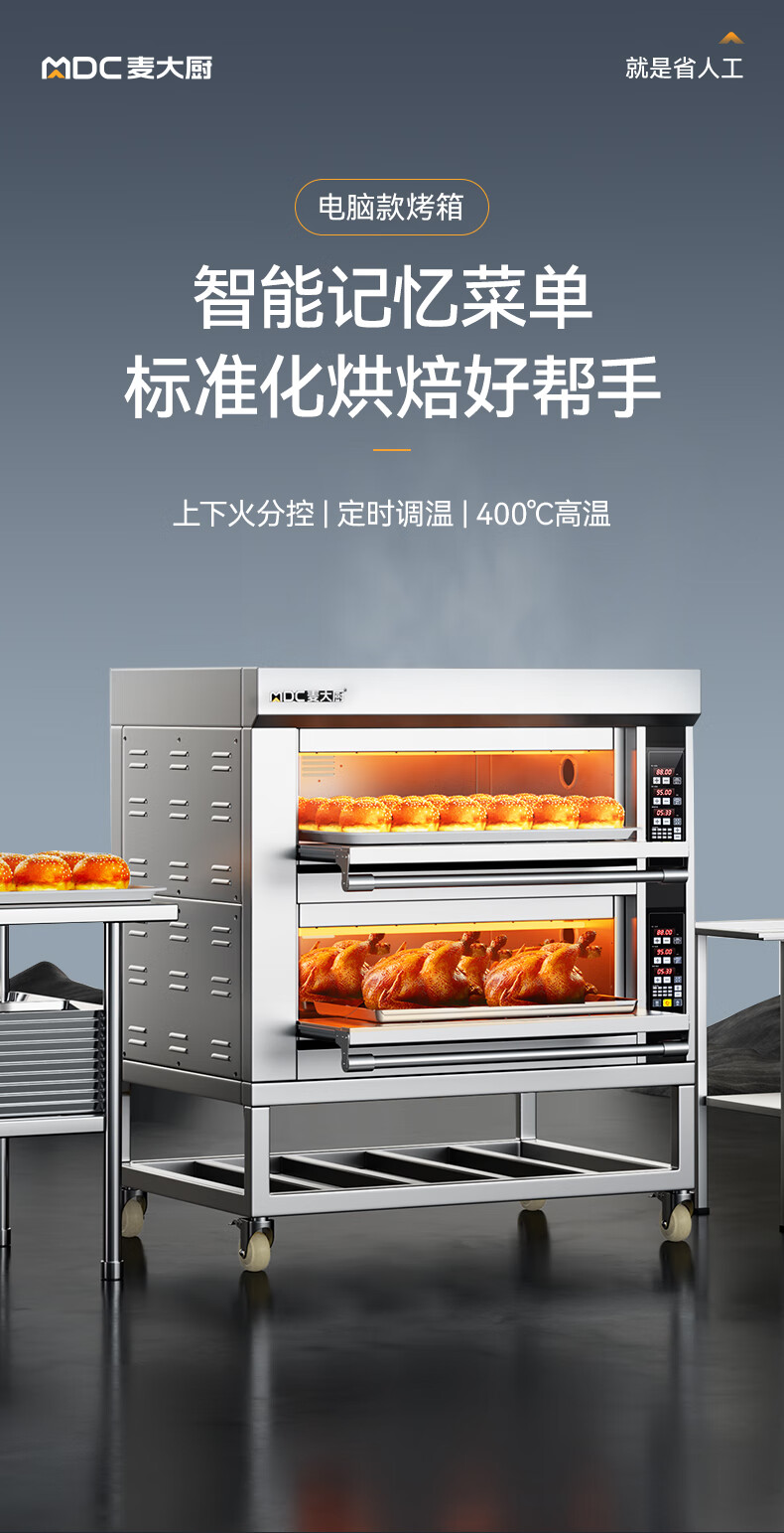麥大廚豪華款兩層四盤(pán)智能控溫上下獨(dú)立烤箱13.2KW