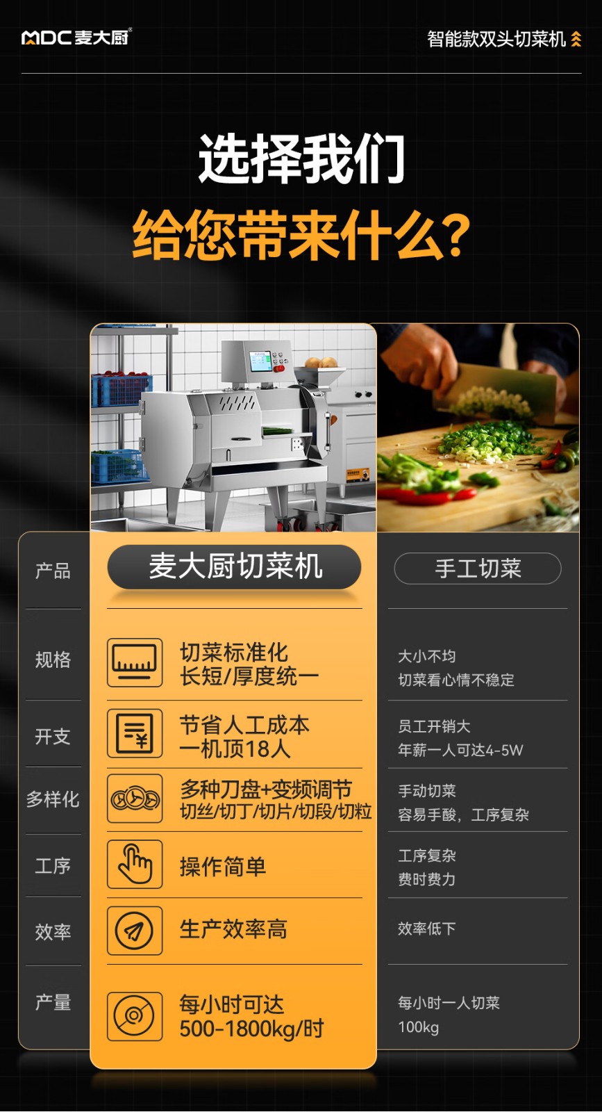 首頁 > 商廚產(chǎn)品 > 食品機(jī) > 切菜機(jī) >麥大廚商用切菜機(jī)多功能雙頭變頻食堂廚房電動(dòng)葉菜根莖切碎機(jī)