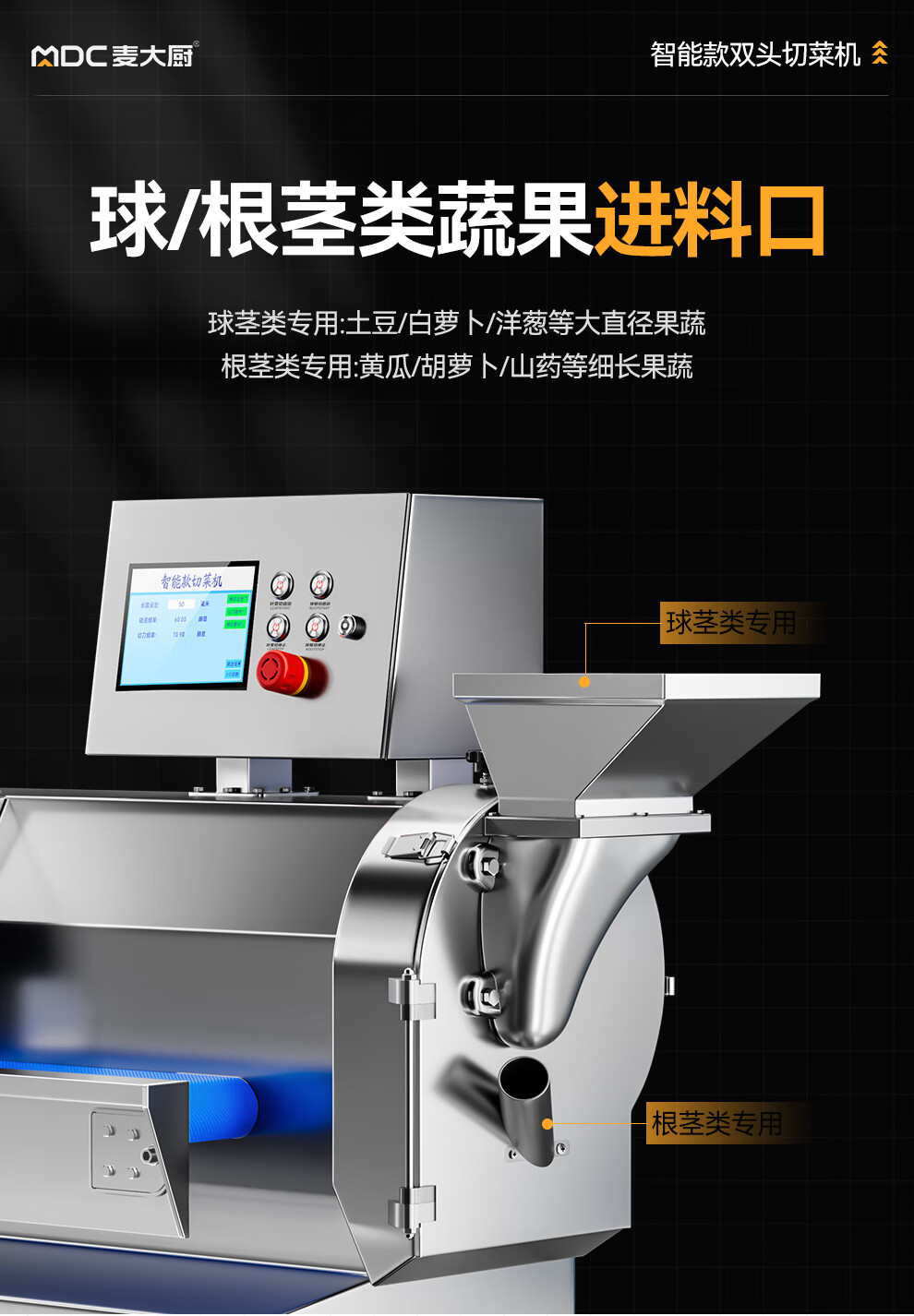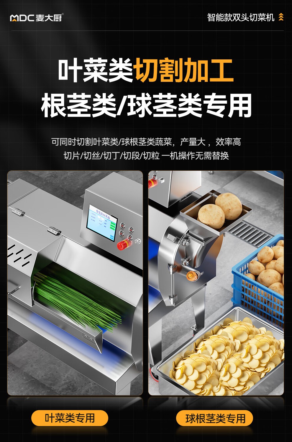 麥大廚商用切菜機(jī)多功能雙頭變頻食堂廚房電動(dòng)葉菜根莖切碎機(jī)