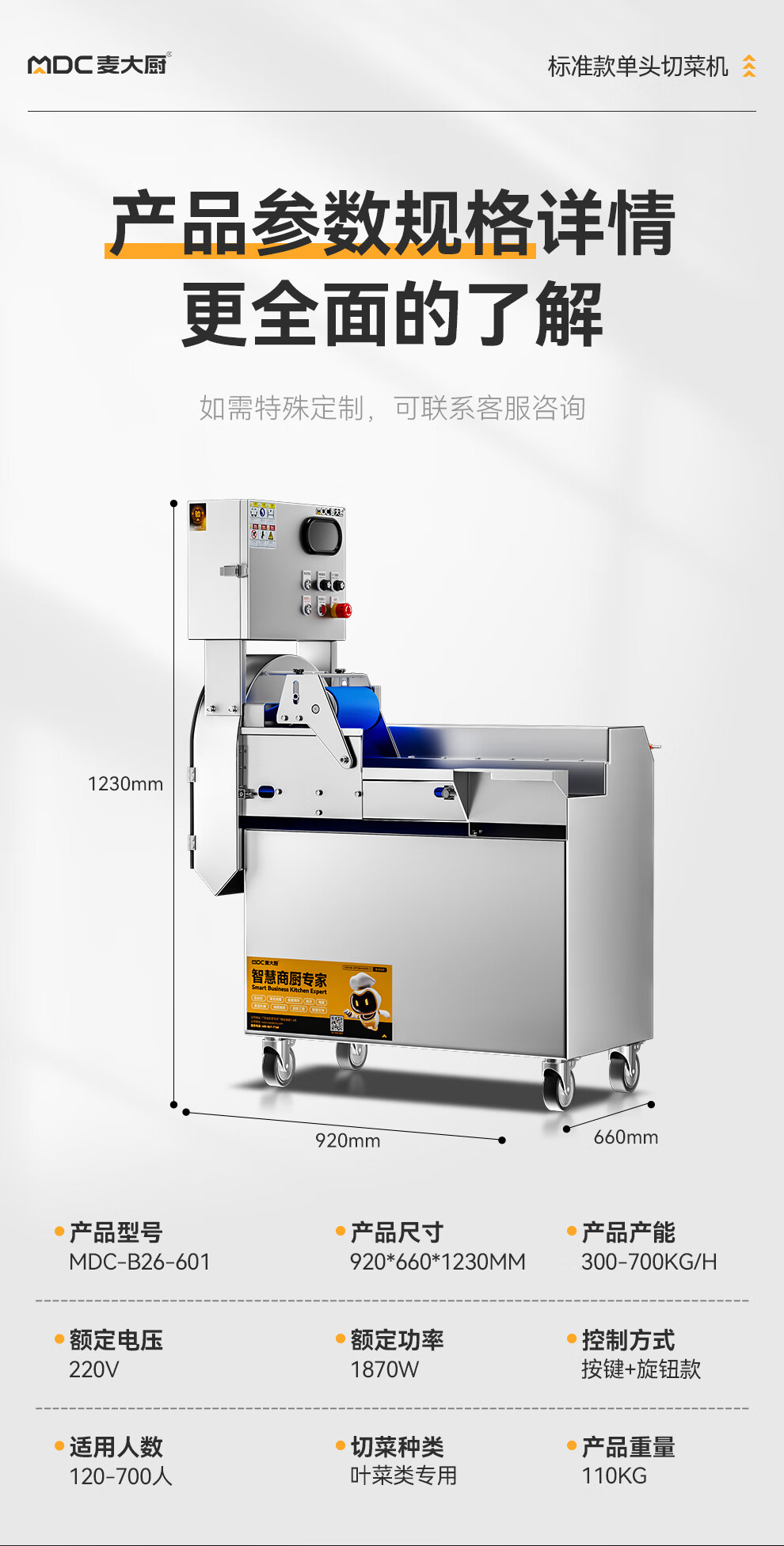 麥大廚標準款單頭葉菜類切菜機食堂葉菜類切段切丁機商用