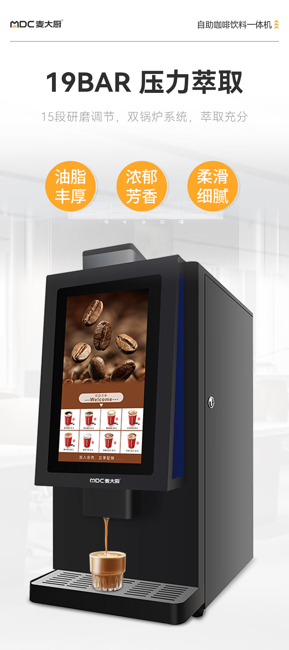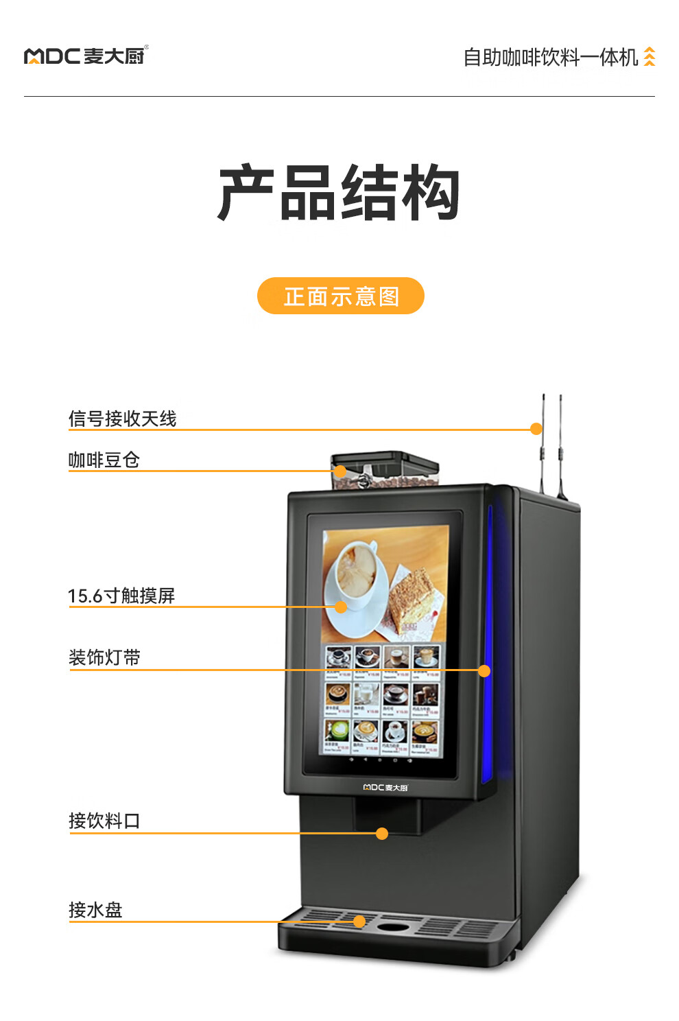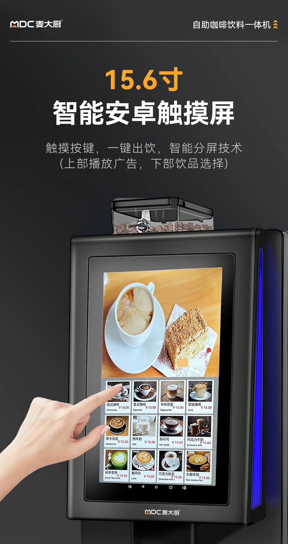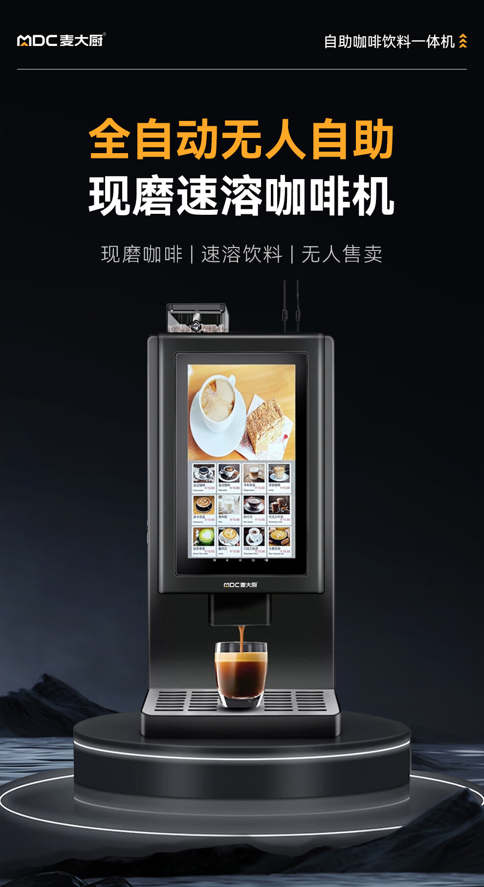 麥大廚單熱臺式無人自助商用現(xiàn)磨速溶咖啡飲料一體機