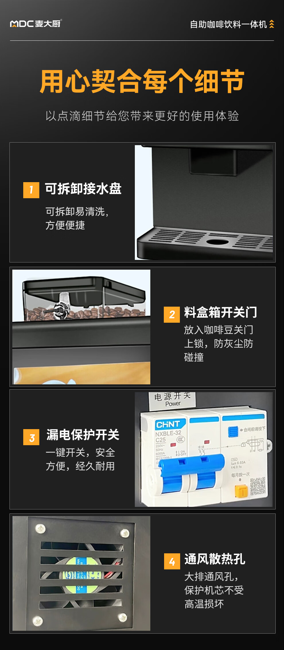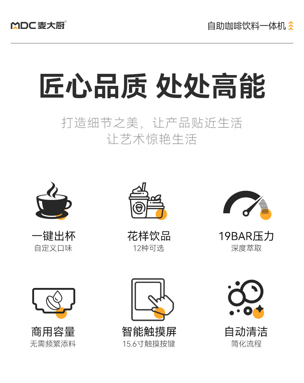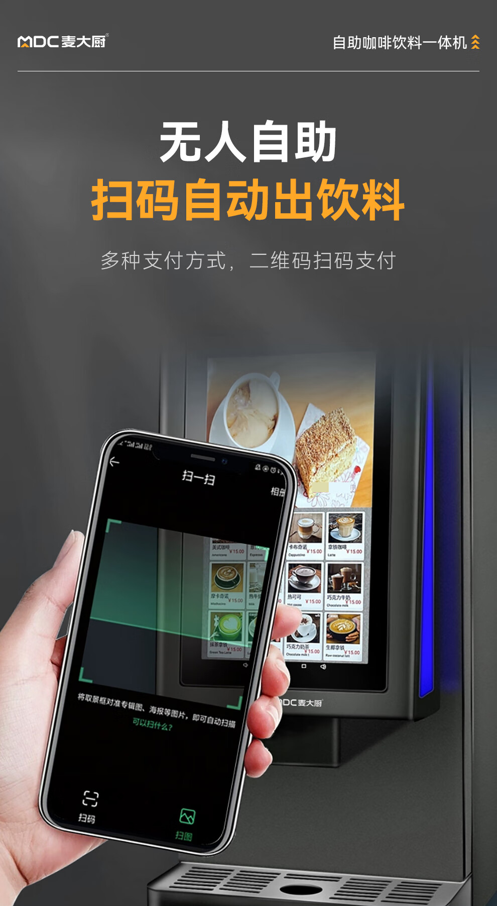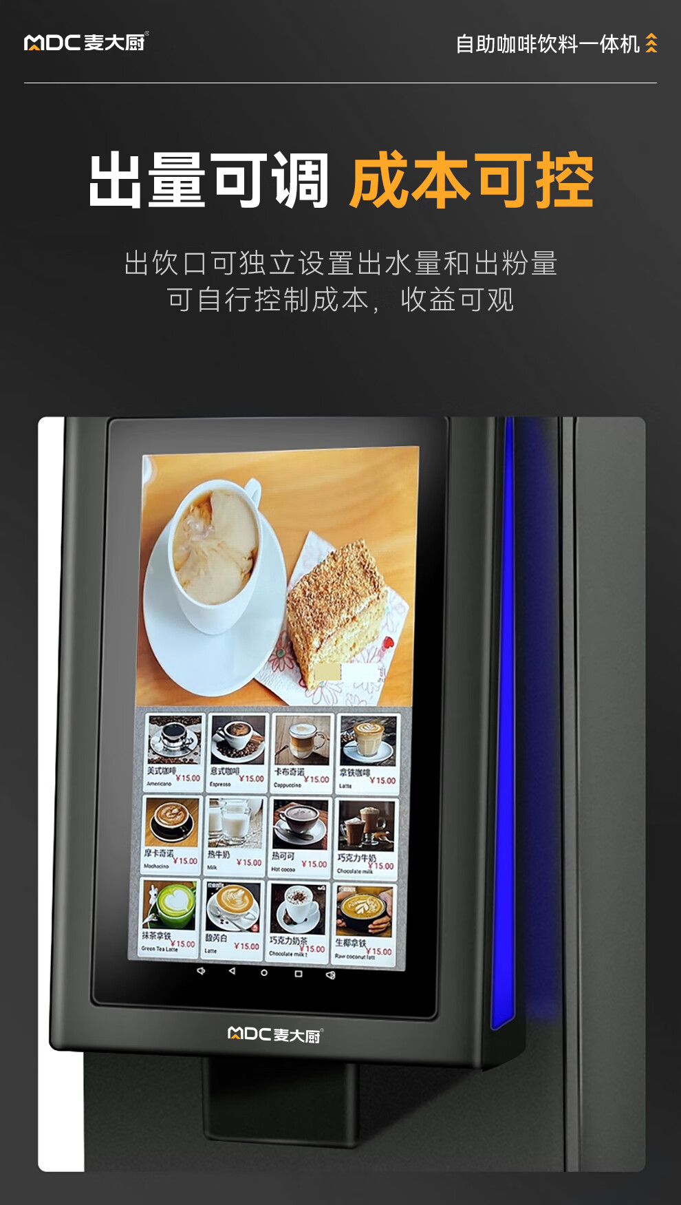 麥大廚單熱臺式無人自助商用現(xiàn)磨速溶咖啡飲料一體機