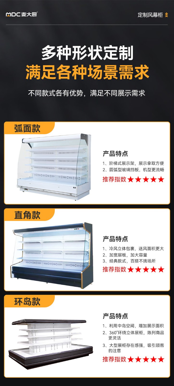 麥大廚商用1.5M豪華款風(fēng)冷弧形風(fēng)幕柜一體機(jī)
