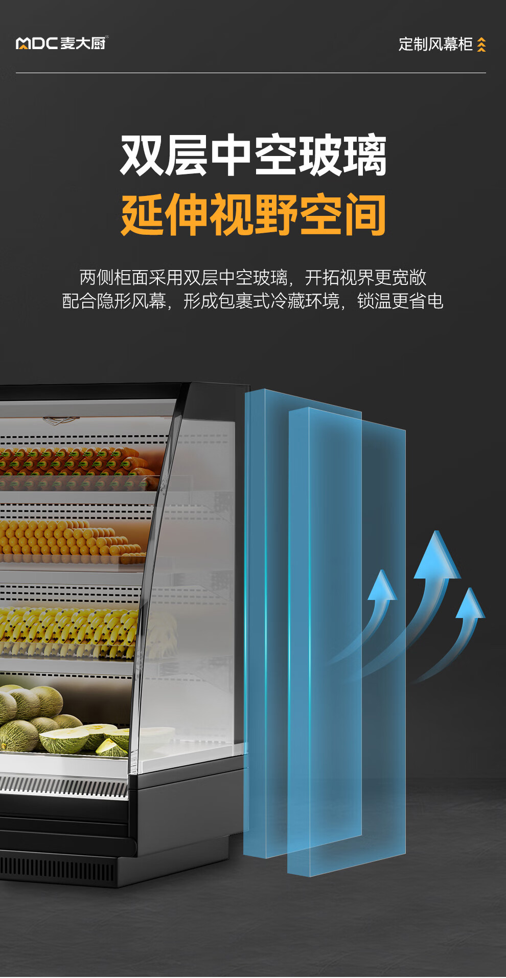 麥大廚商用6.0M豪華款風(fēng)冷弧形風(fēng)幕柜一體機(jī)