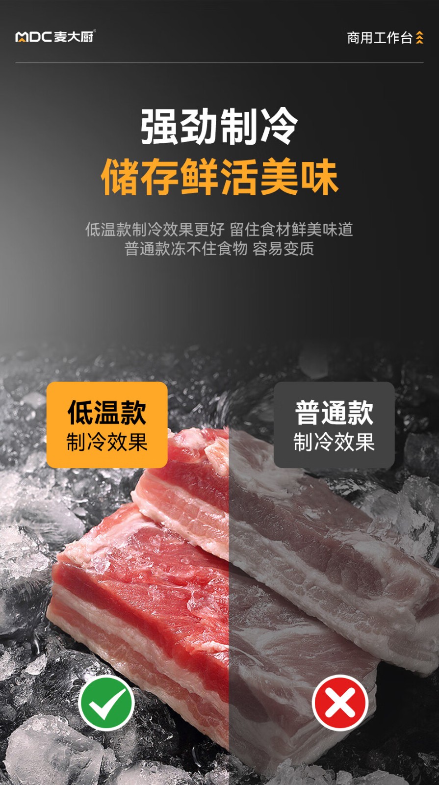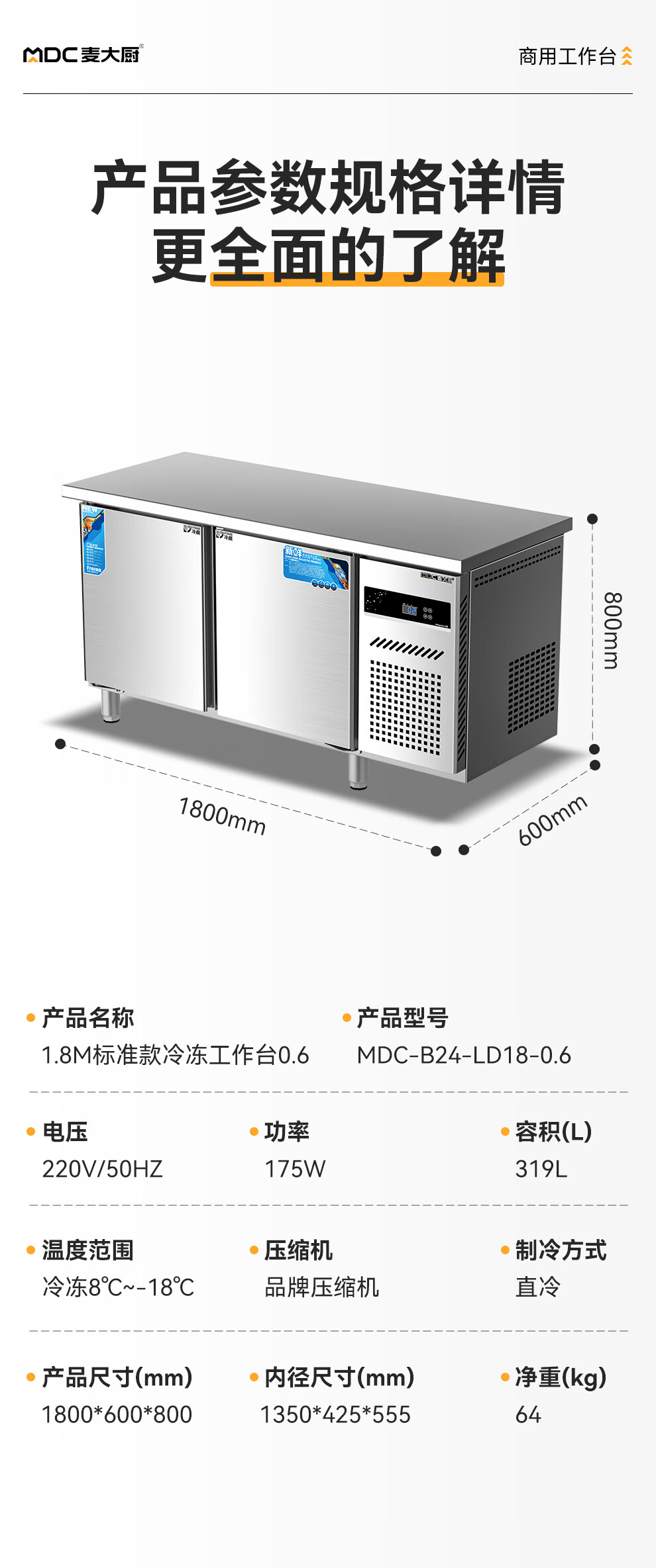 麥大廚1.8M標(biāo)準(zhǔn)款175W直冷冷凍工作臺0.6