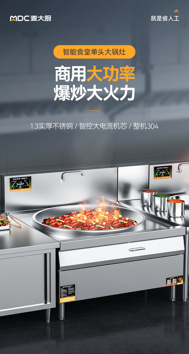 麥大廚星麥款304材質(zhì)電磁大鍋灶單頭大鍋灶1200