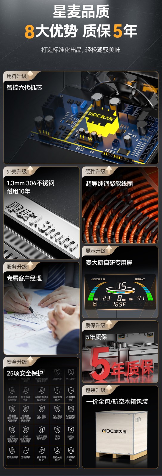 麥大廚星麥款304材質(zhì)電磁單頭單尾小炒爐12kw