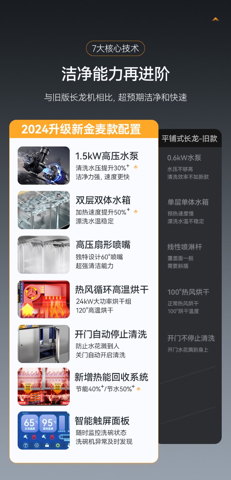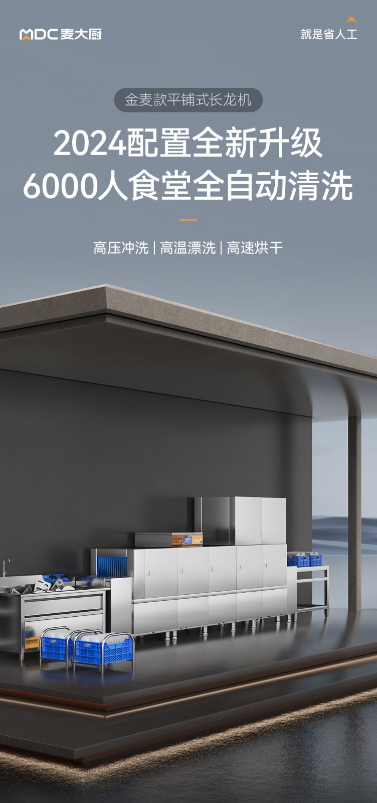 麥大廚金麥款平放式觸屏熱回收1.7m單缸單噴洗碗機