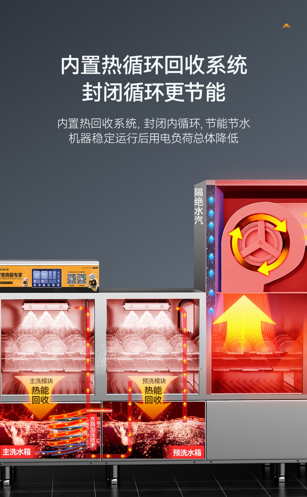 麥大廚金麥款平放式觸屏熱回收3.2m三缸雙噴洗碗機
