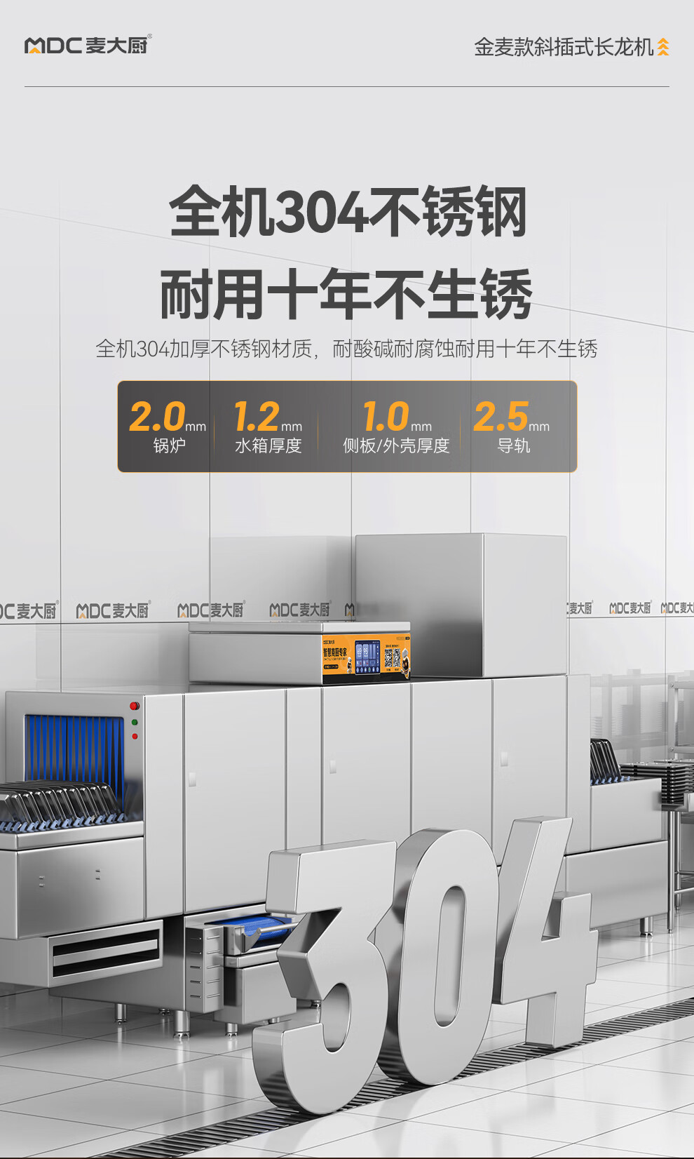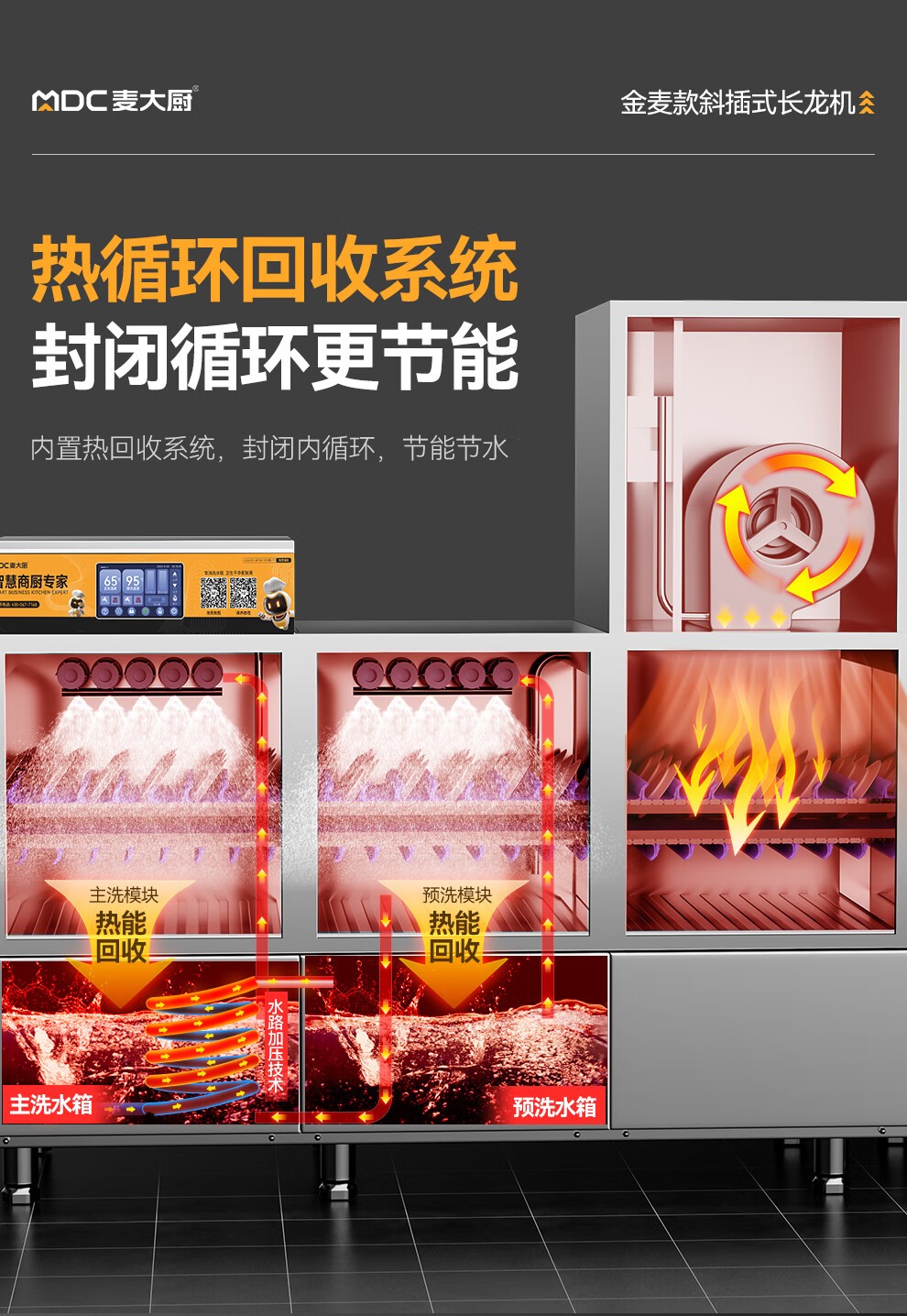 麥大廚金麥款斜插式觸屏熱回收2.95m雙缸雙噴洗碗機(jī)