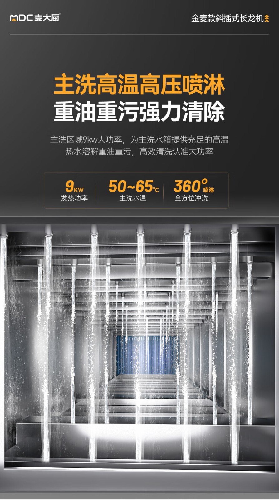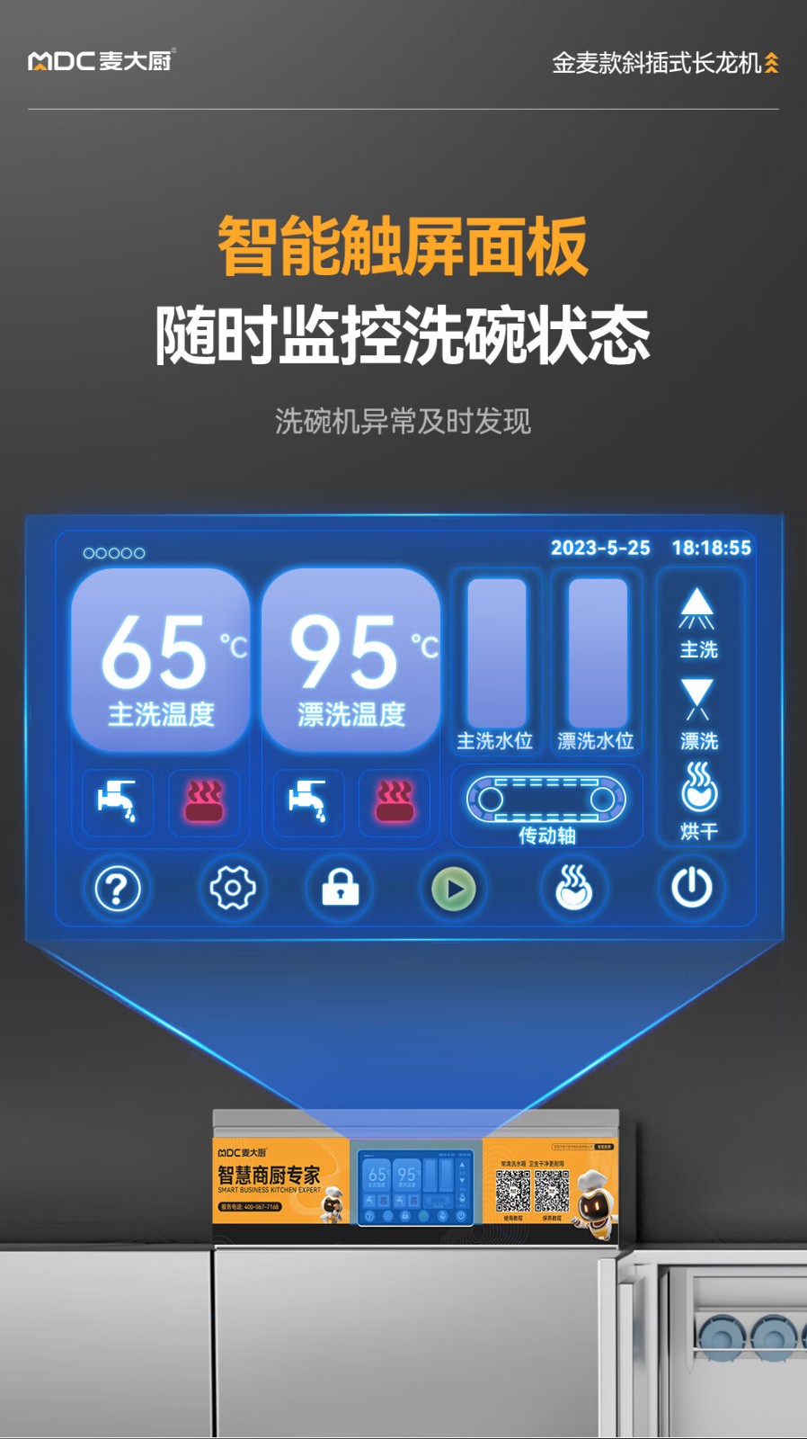 麥大廚金麥款斜插式觸屏熱回收3.75m三缸雙噴洗碗機(jī)