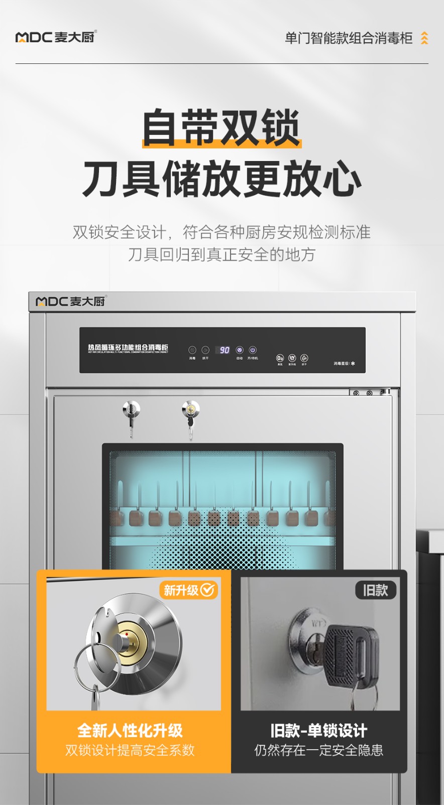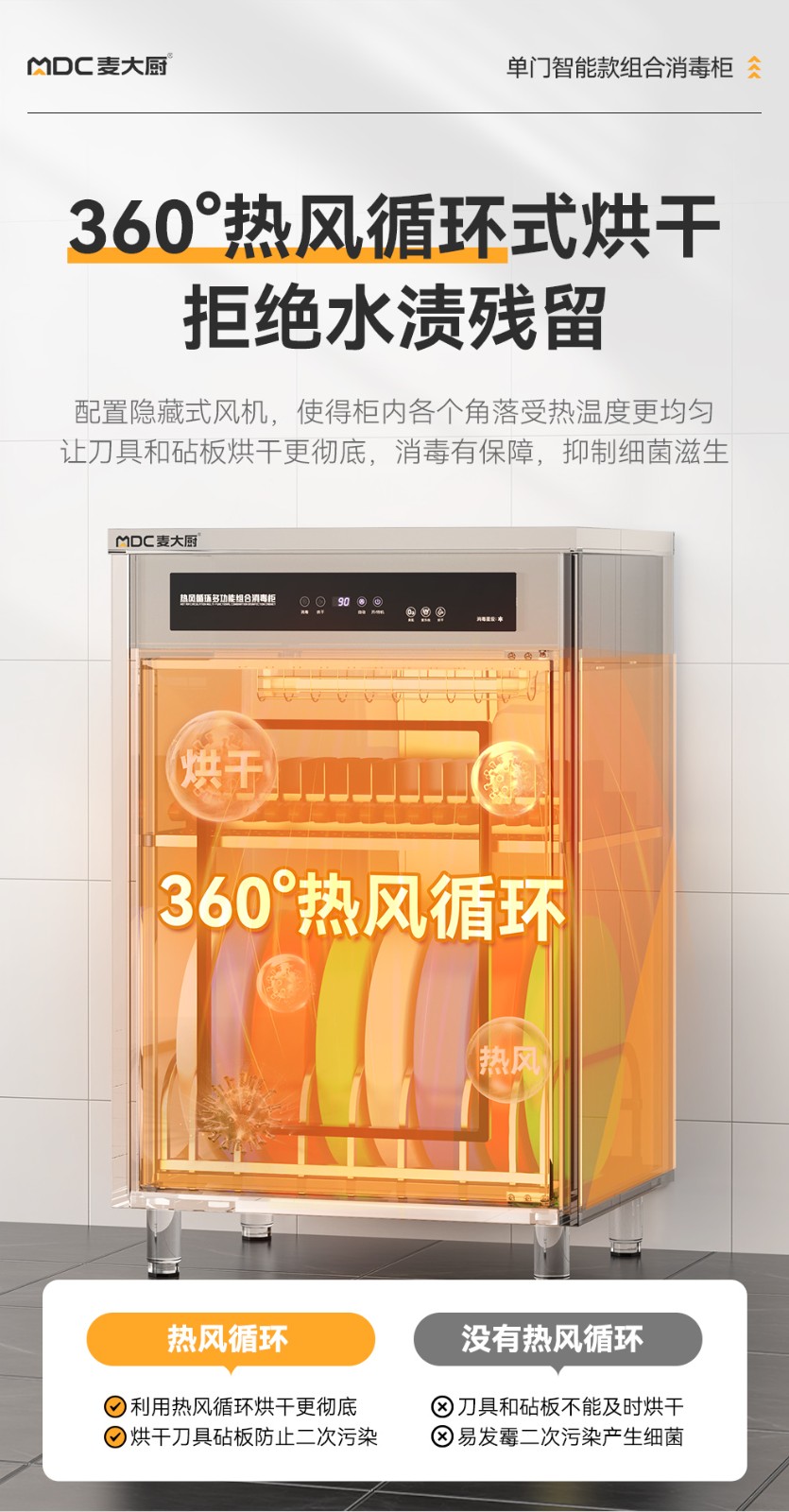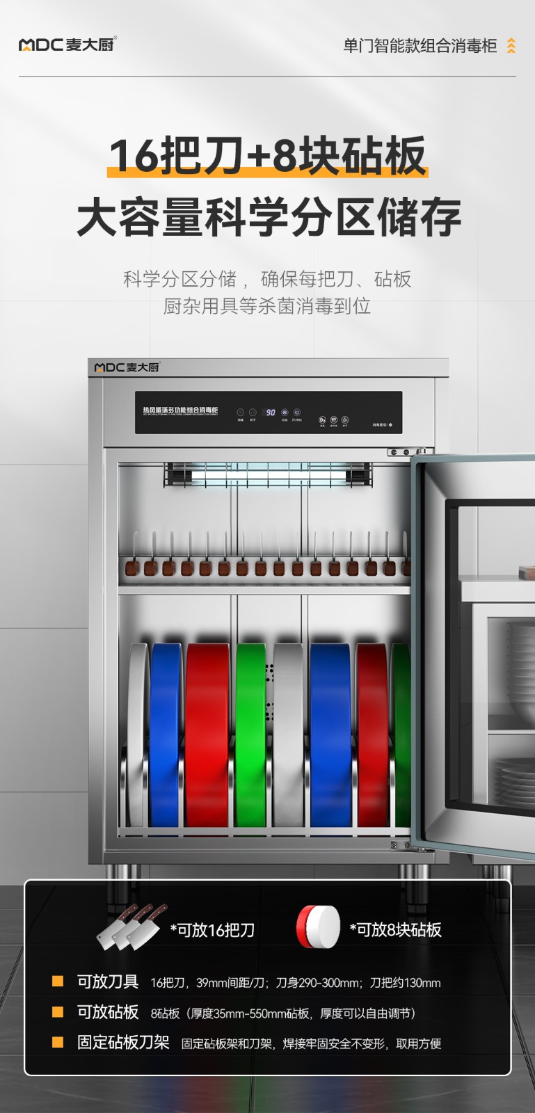 麥大廚智能款單門雙層刀具砧板組合臭氧紫外線熱風(fēng)循環(huán)消毒柜