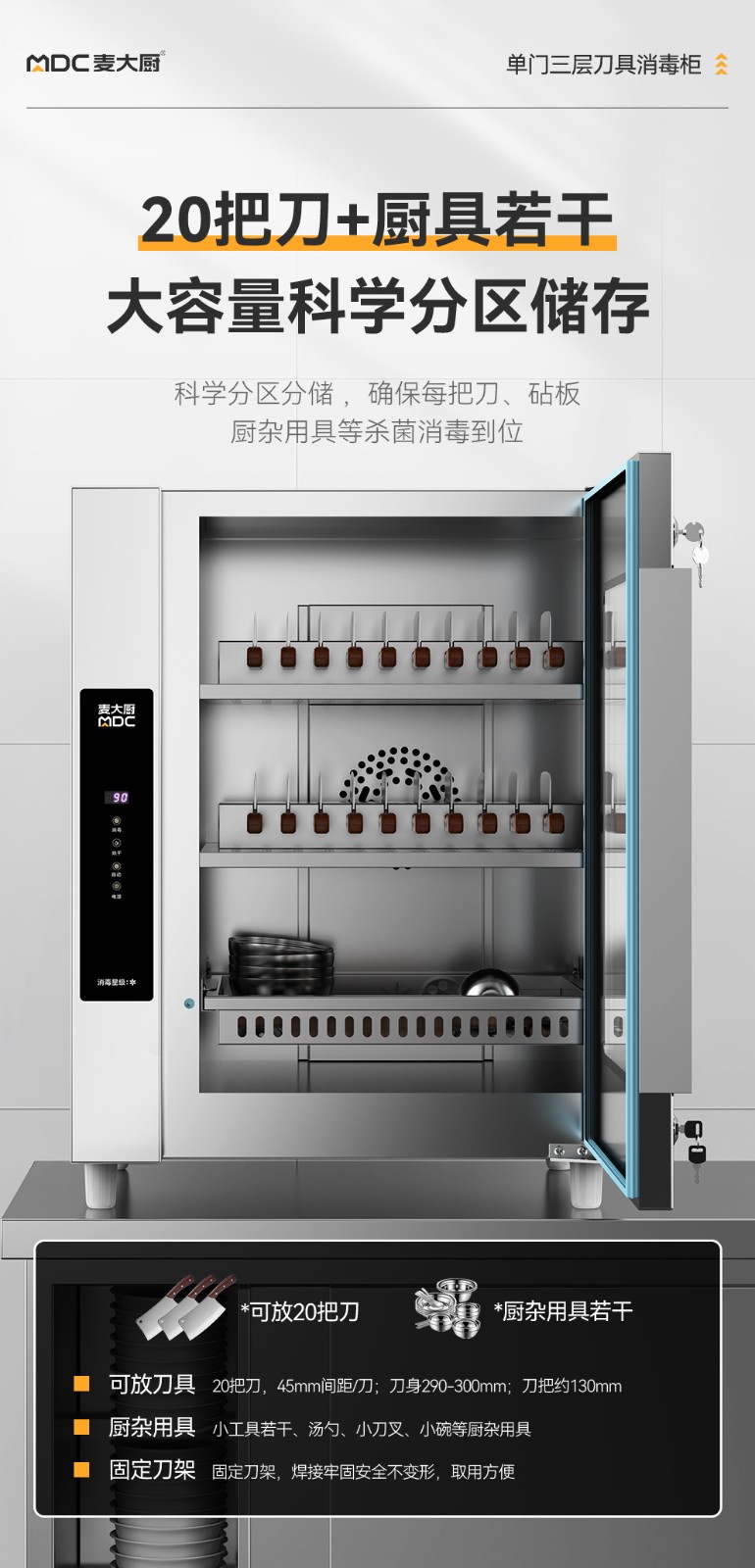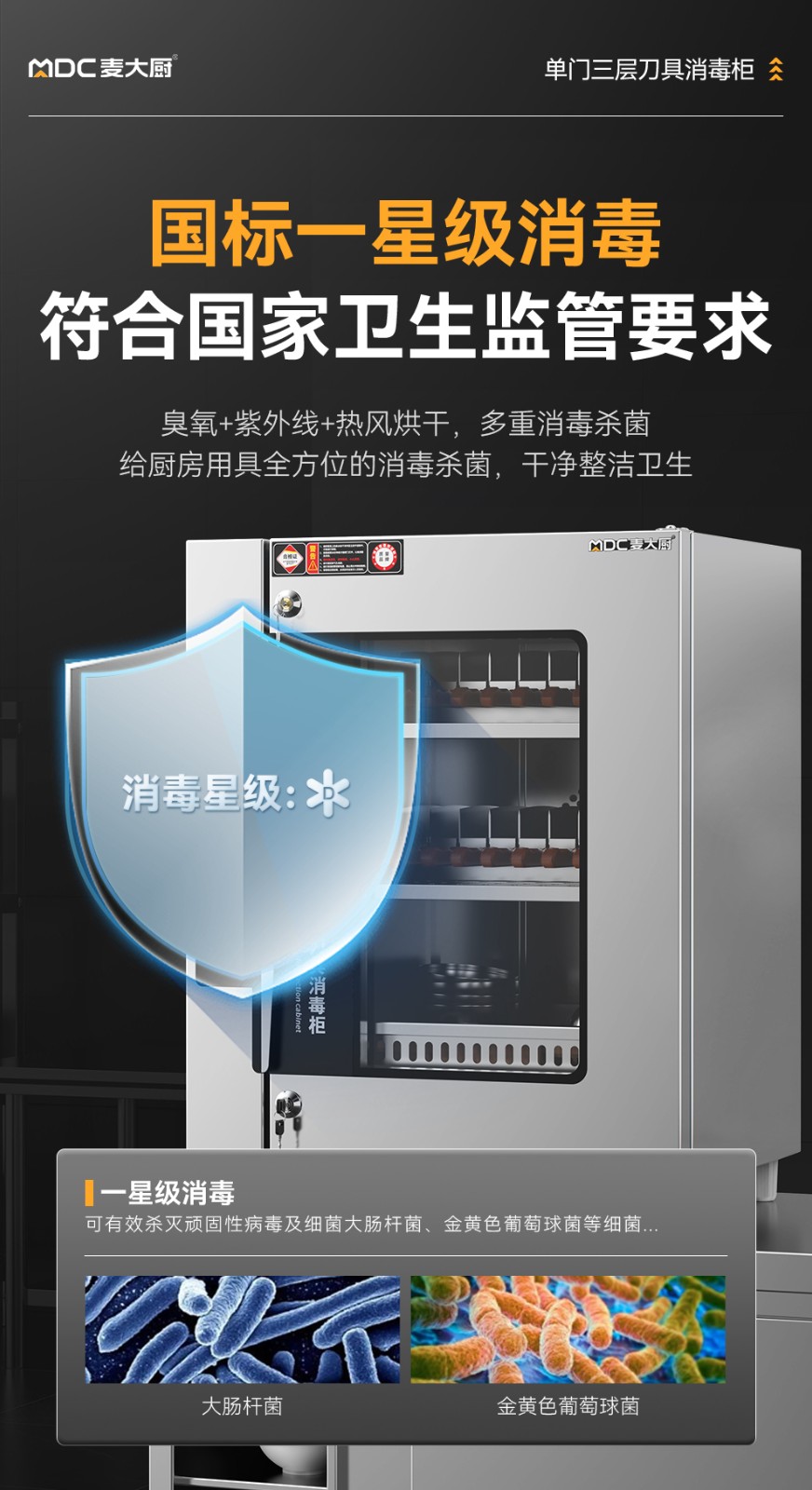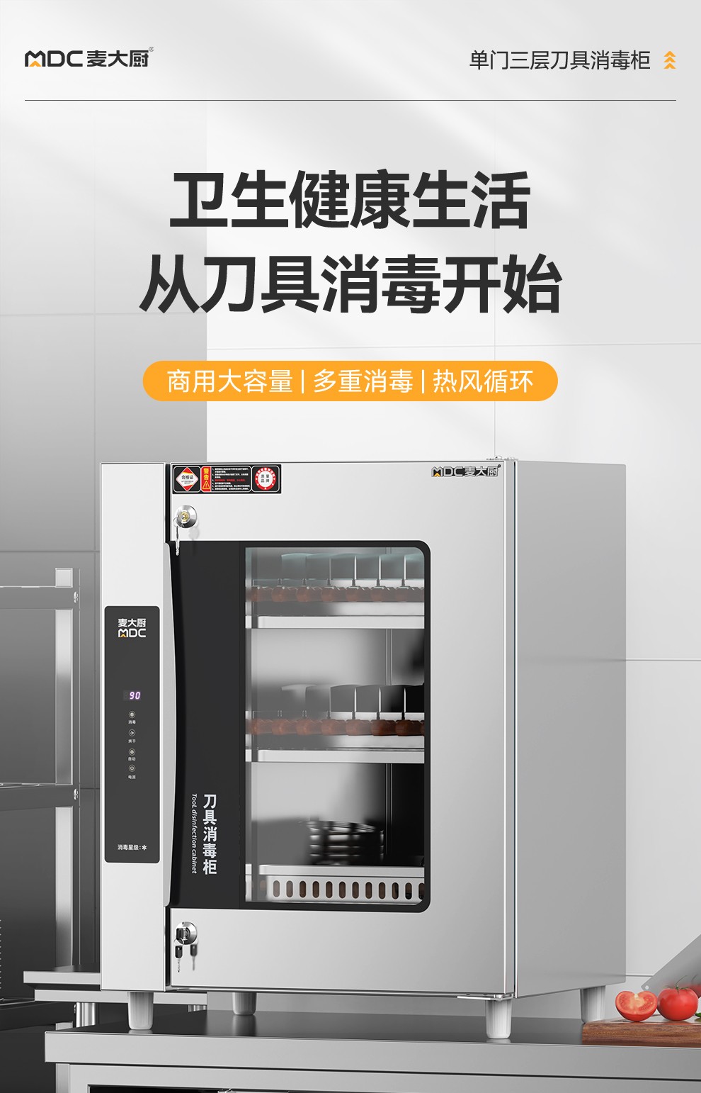 麥大廚智能款單門三層臭氧紫外線熱風循環(huán)消毒柜