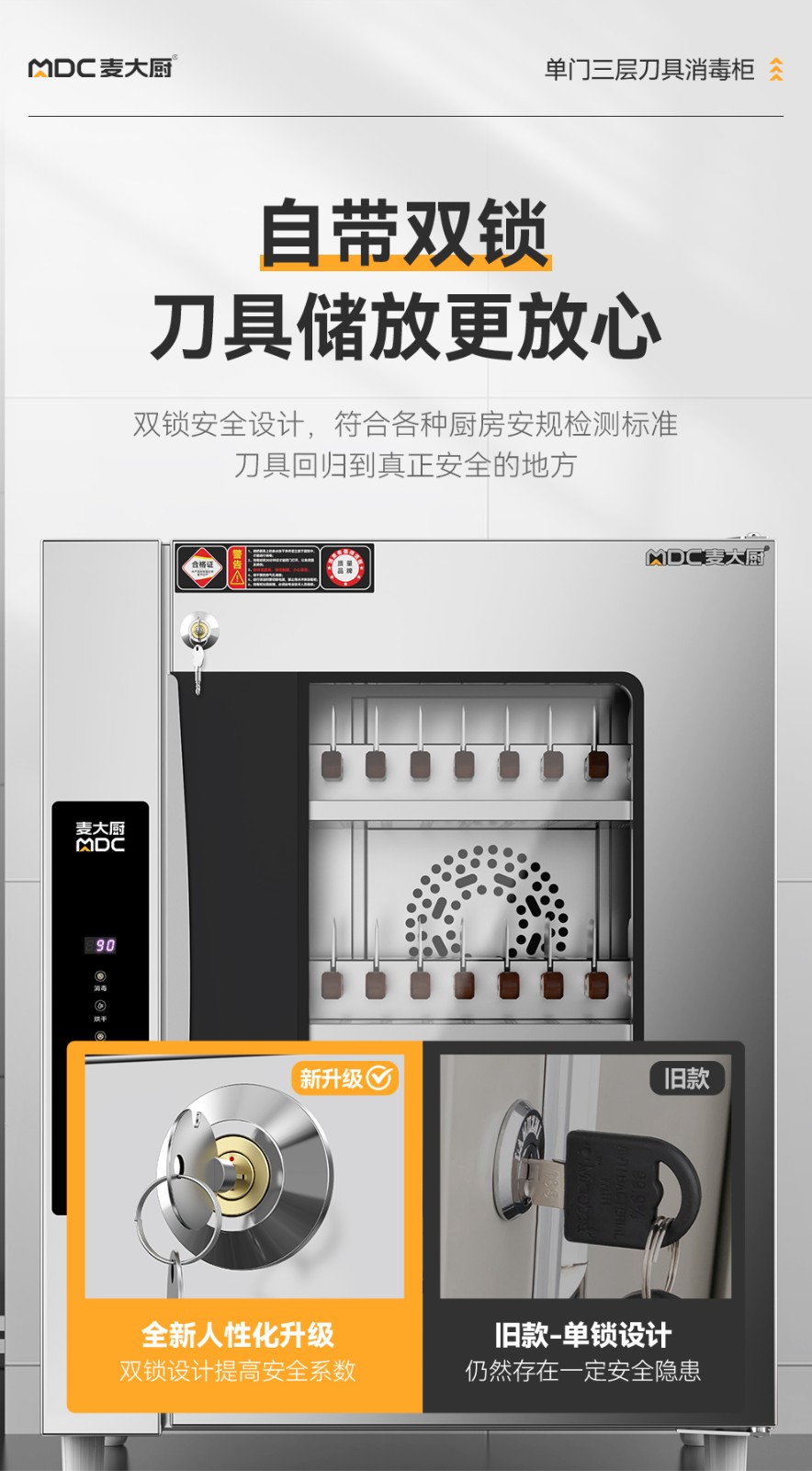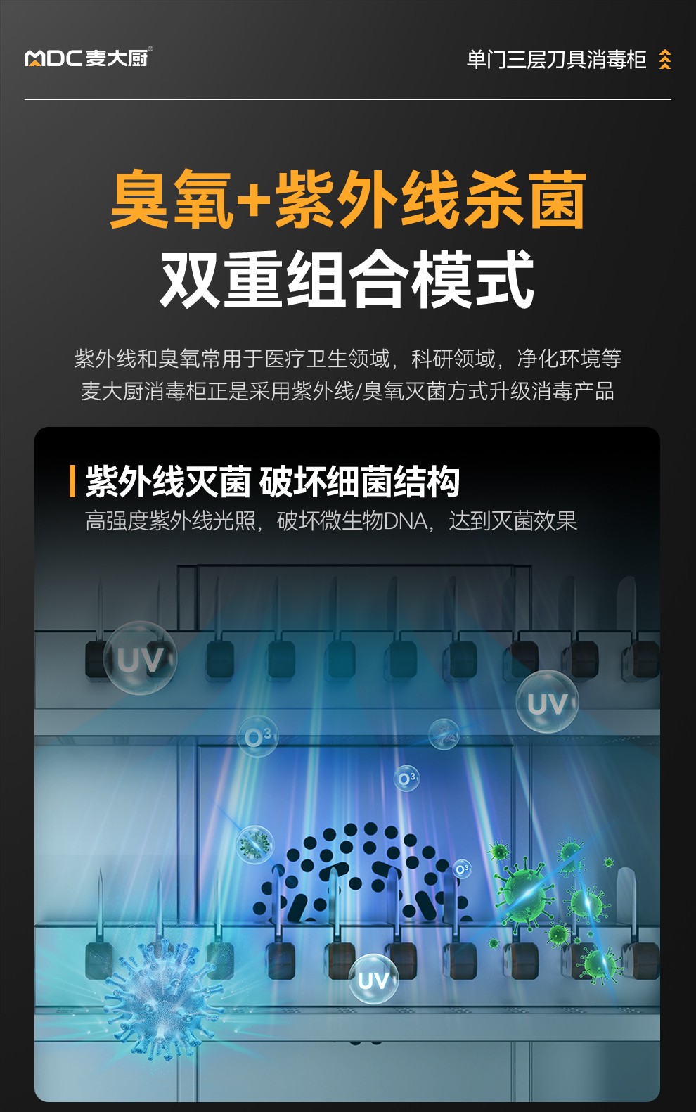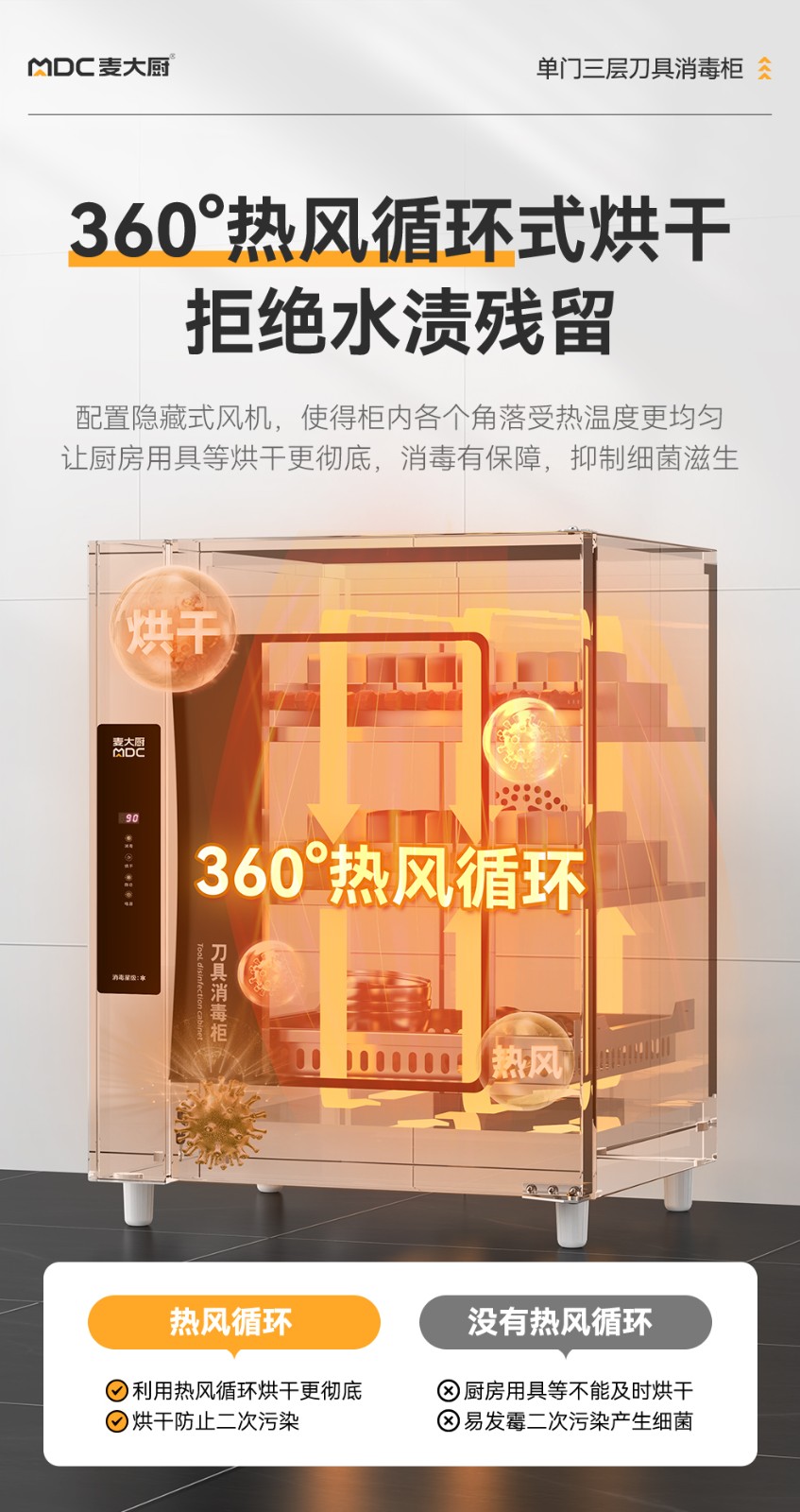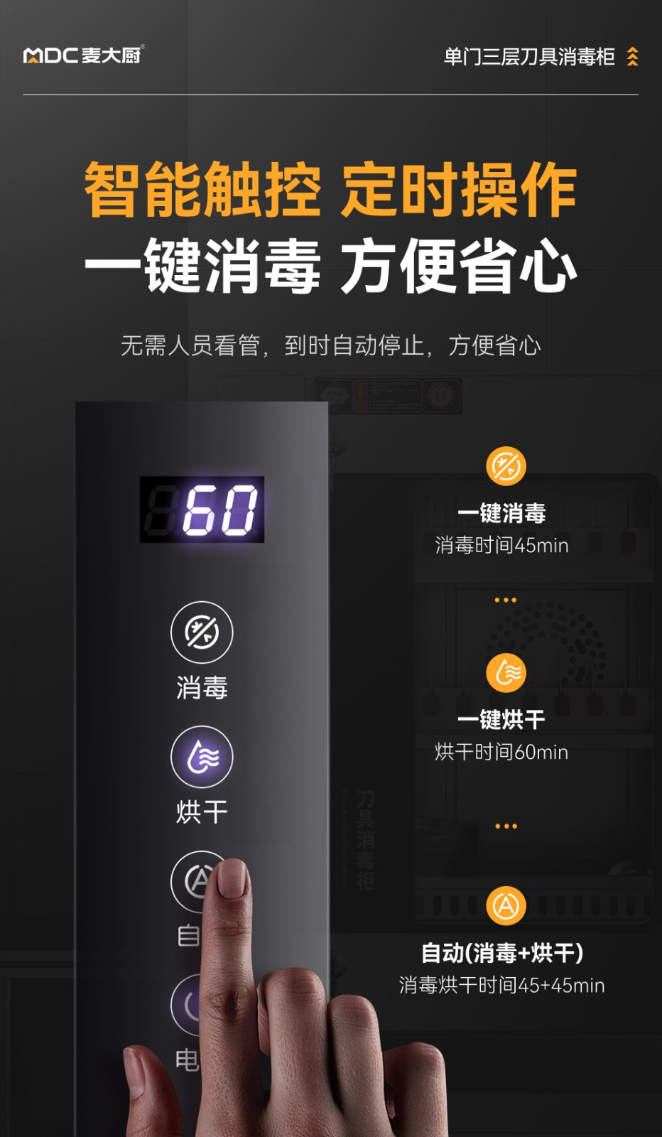麥大廚智能款單門三層臭氧紫外線熱風循環(huán)消毒柜
