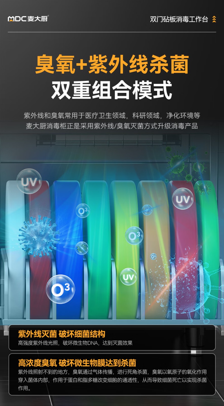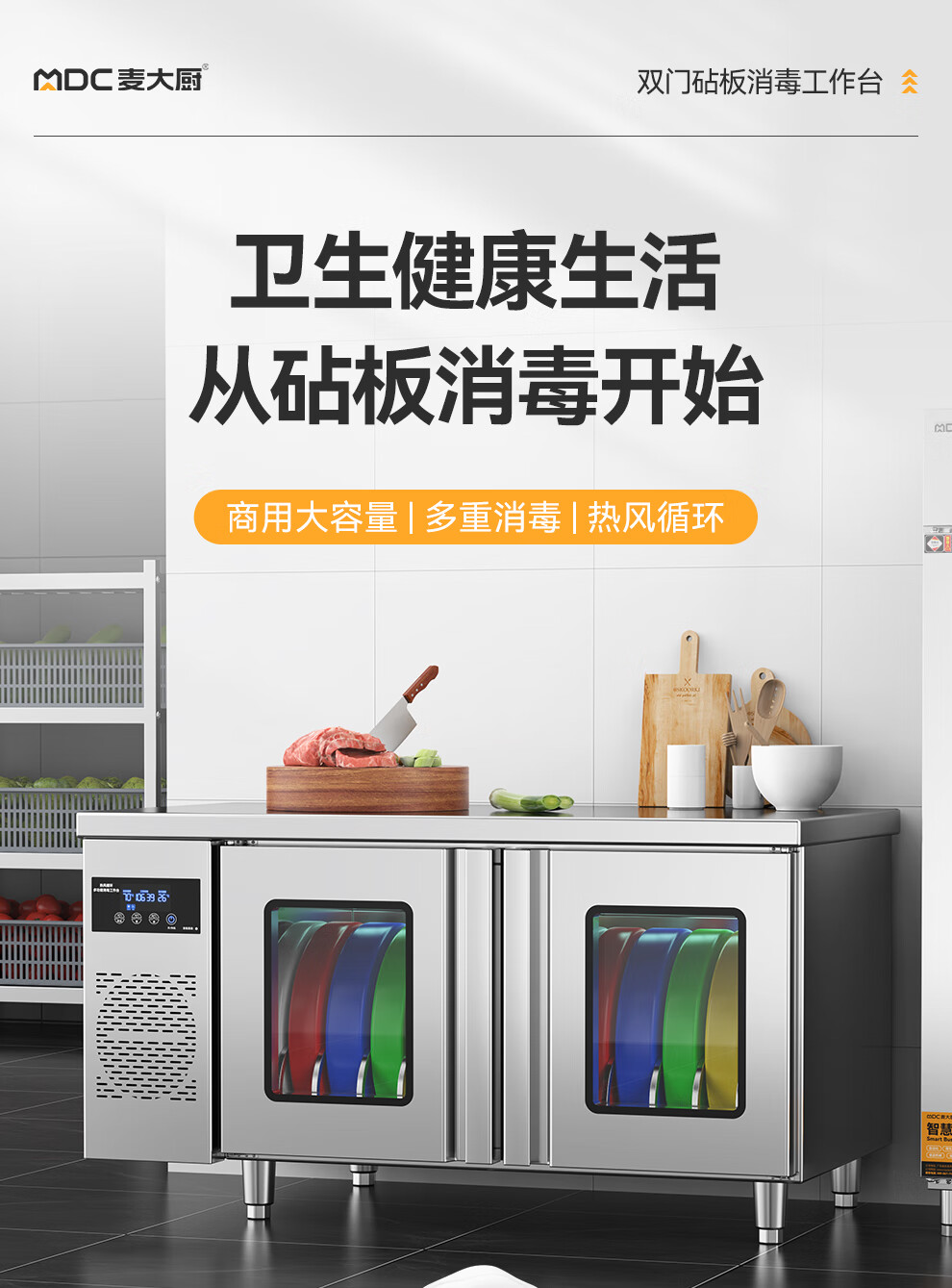 麥大廚1.5m雙門砧板組合臭氧紫外線熱風(fēng)循環(huán)消毒工作臺(tái)