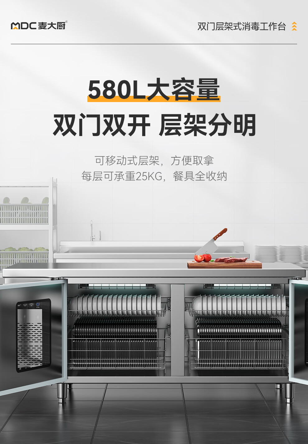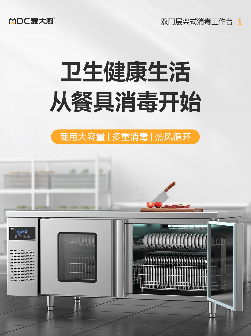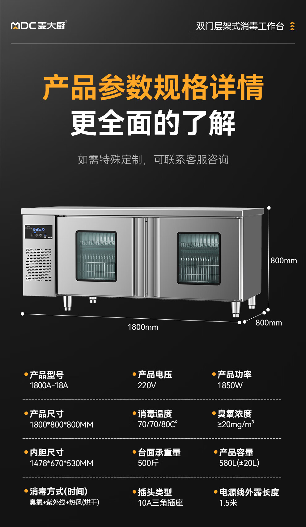 麥大廚1.8m雙門層架式臭氧紫外線熱風(fēng)循環(huán)消毒工作臺(tái)