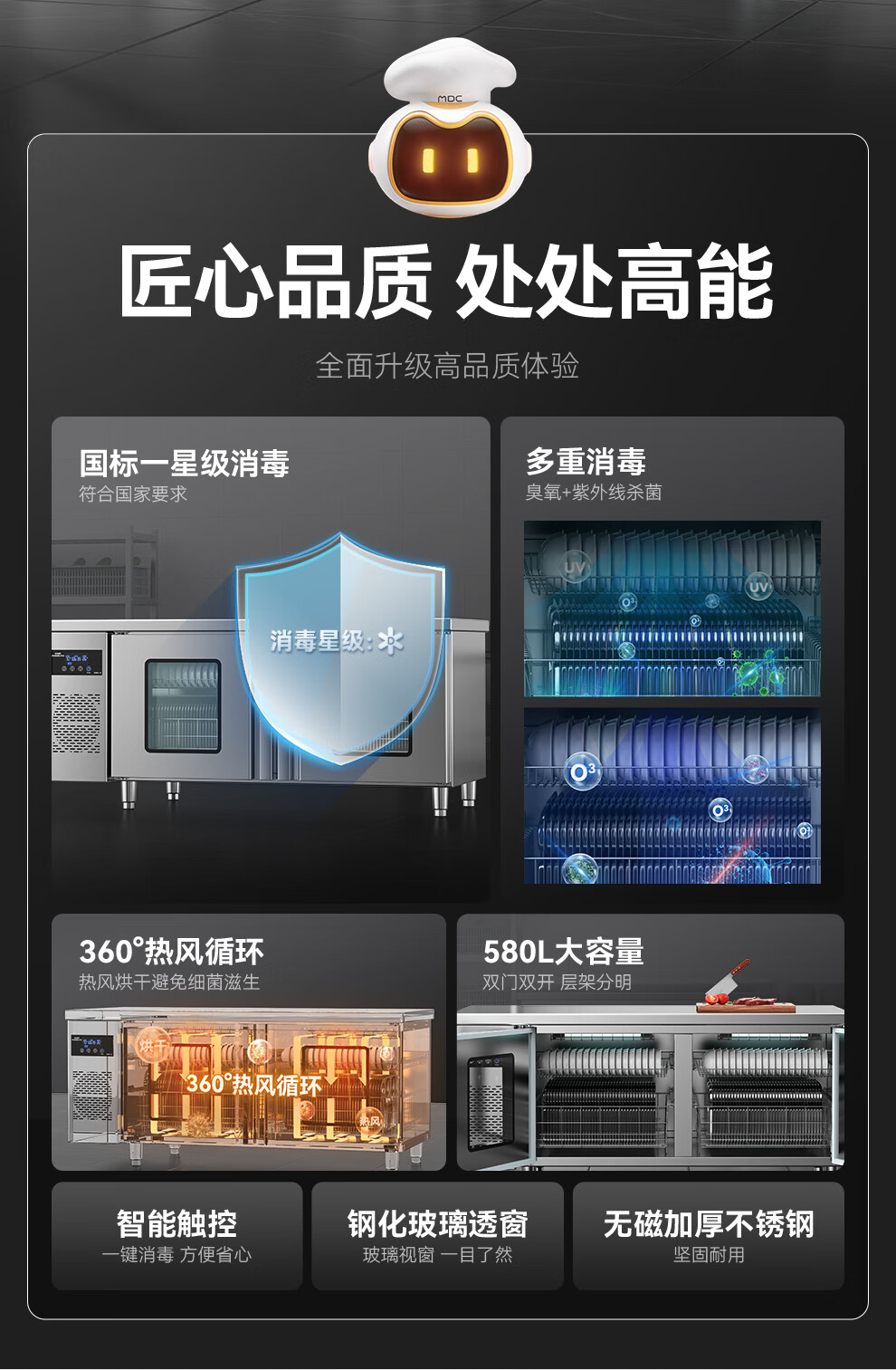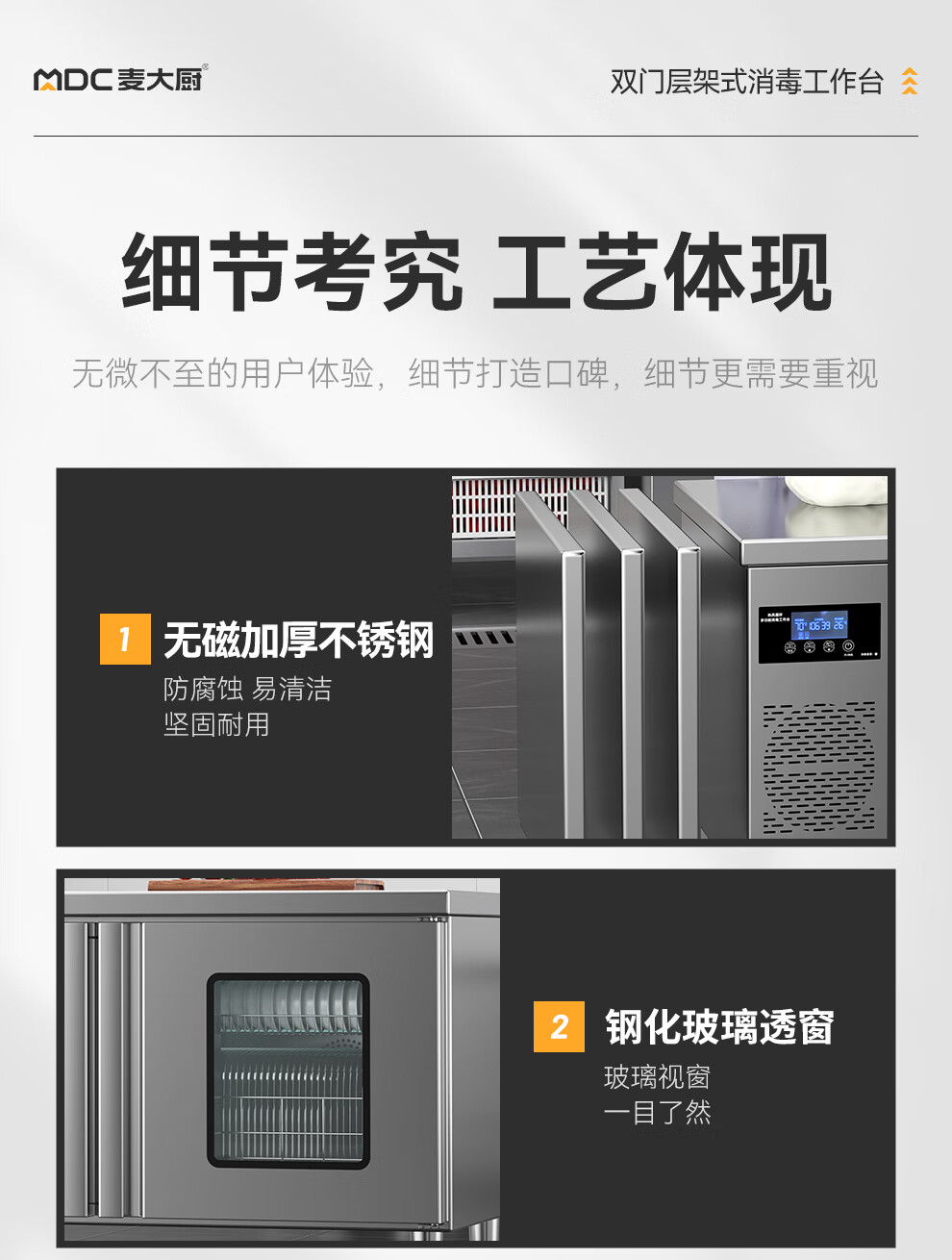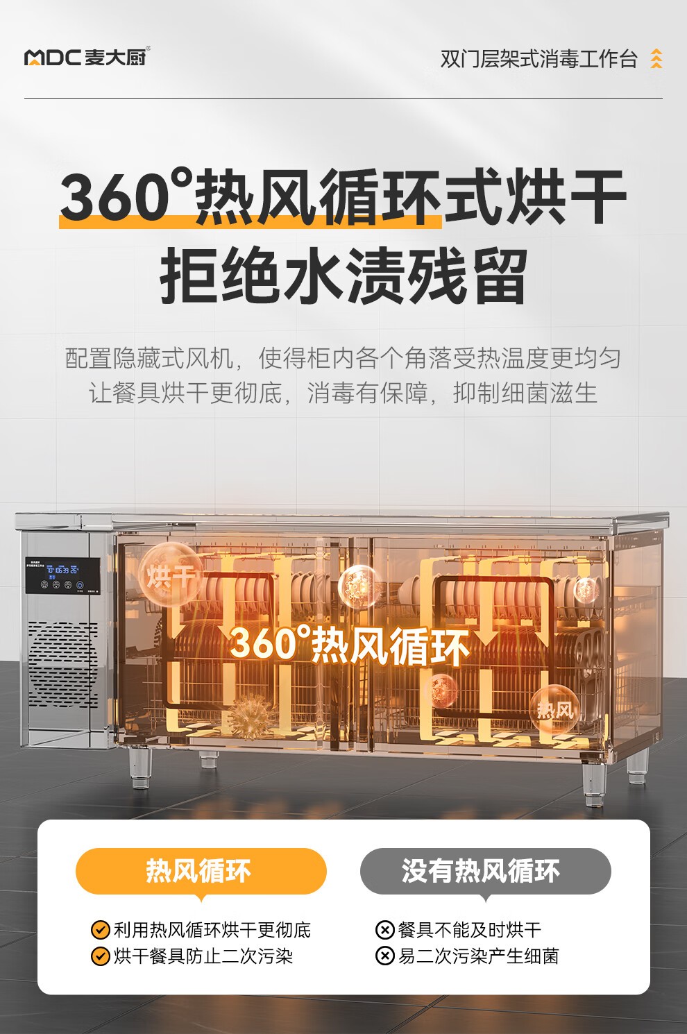 麥大廚1.8m雙門層架式臭氧紫外線熱風(fēng)循環(huán)消毒工作臺(tái)
