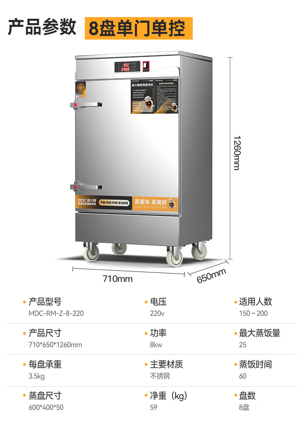 麥大廚金麥款220V電熱智能型8盤單門單控蒸柜 麥大廚金麥款220V電熱智能型8盤單門單控蒸柜 麥大廚金麥款220V電熱智能型8盤單門單控蒸柜 麥大廚金麥款220V電熱智能型8盤單門單控蒸柜