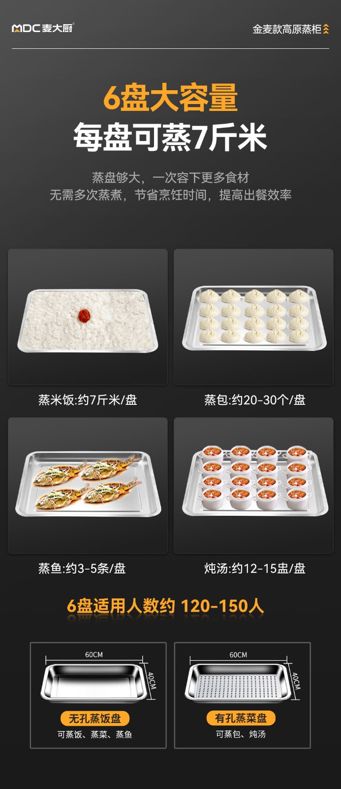 麥大廚金麥款6盤電熱220V單門高原蒸柜6KW