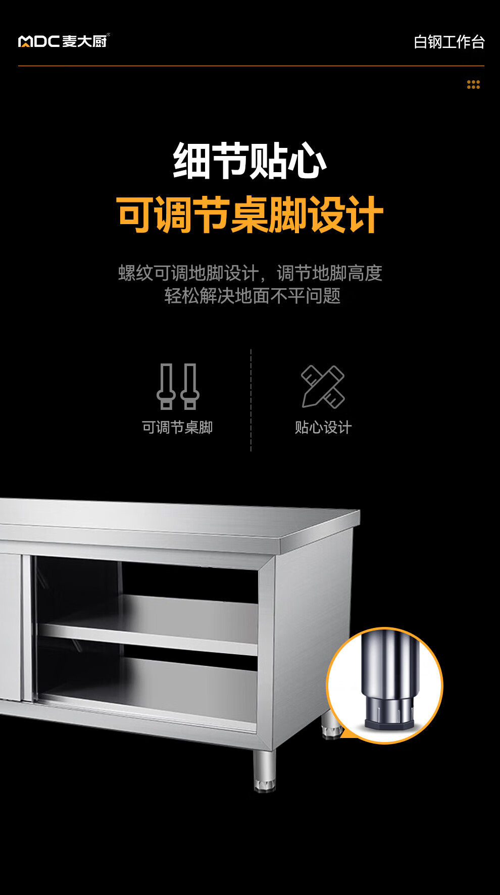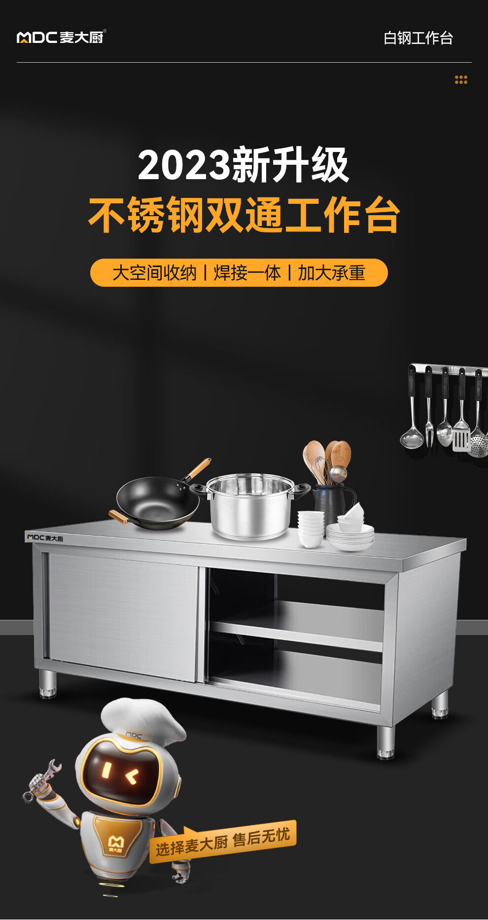 麥大廚2.0m升級款不銹鋼工作臺雙通工作臺帶靠背