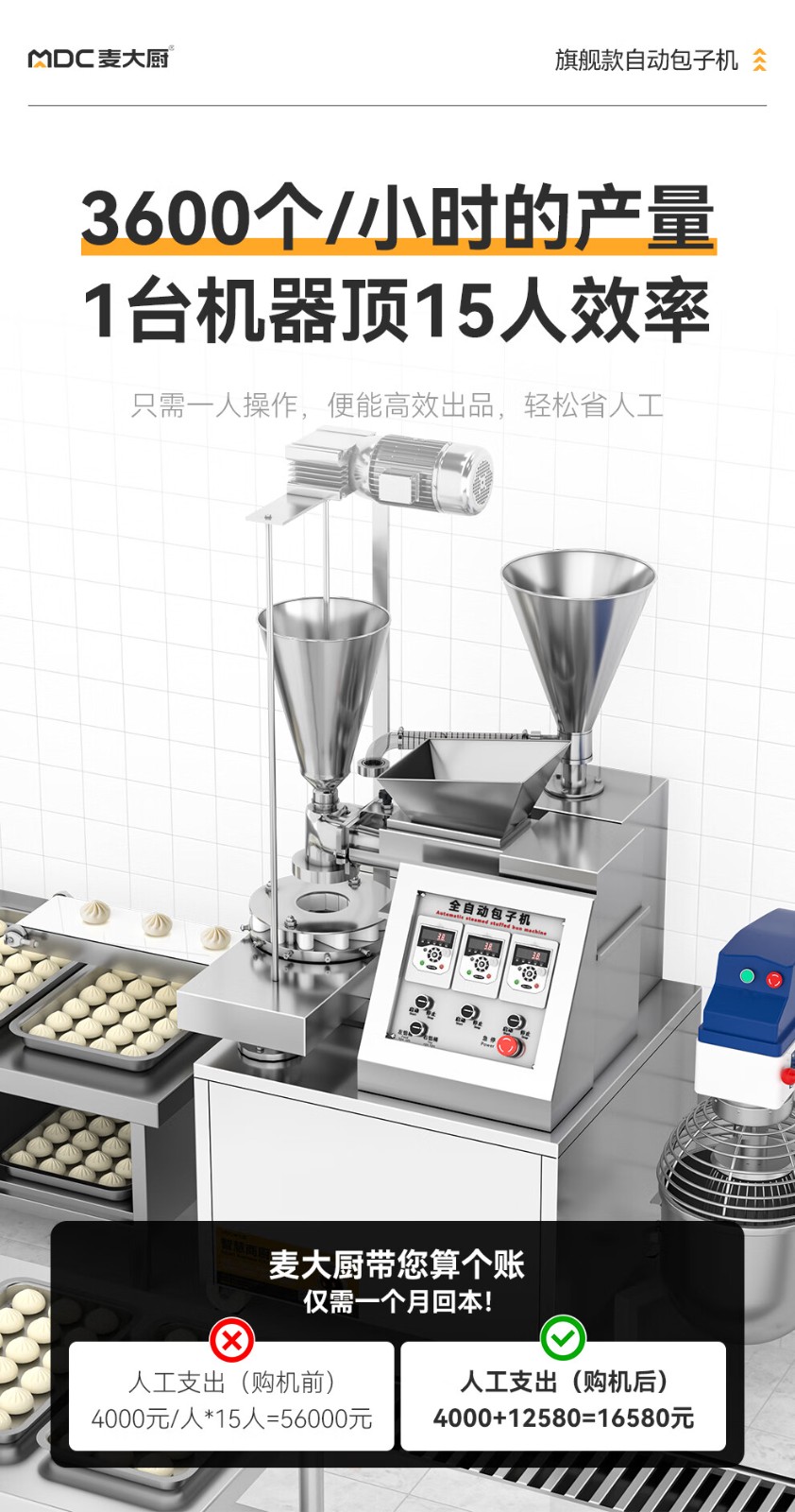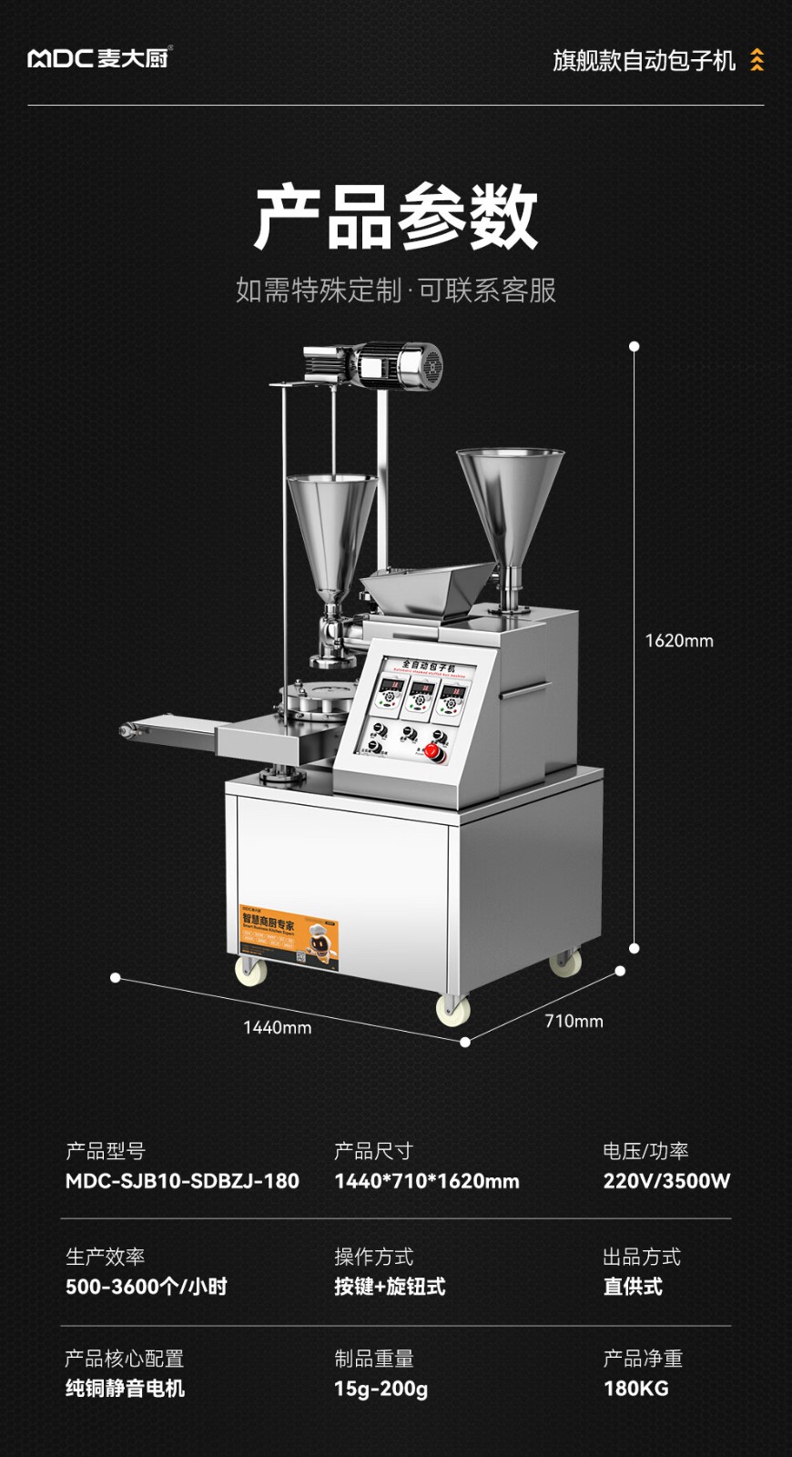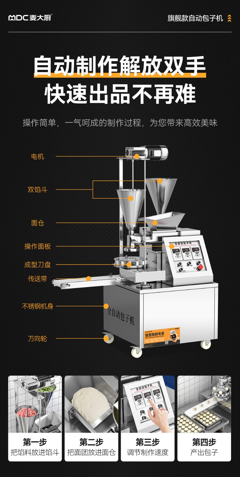 麥大廚多功能旗艦款立式雙斗直供數(shù)控包子機(jī)3.5kw