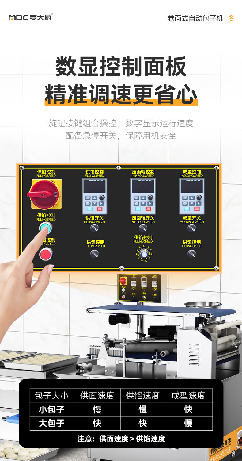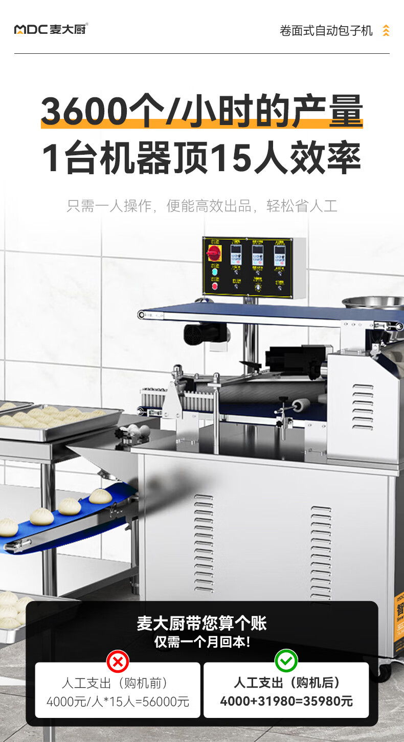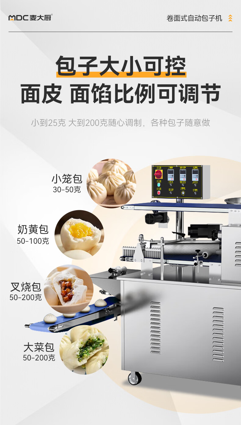 麥大廚豪華款卷面式單斗全自動數(shù)控包子機1.75kw