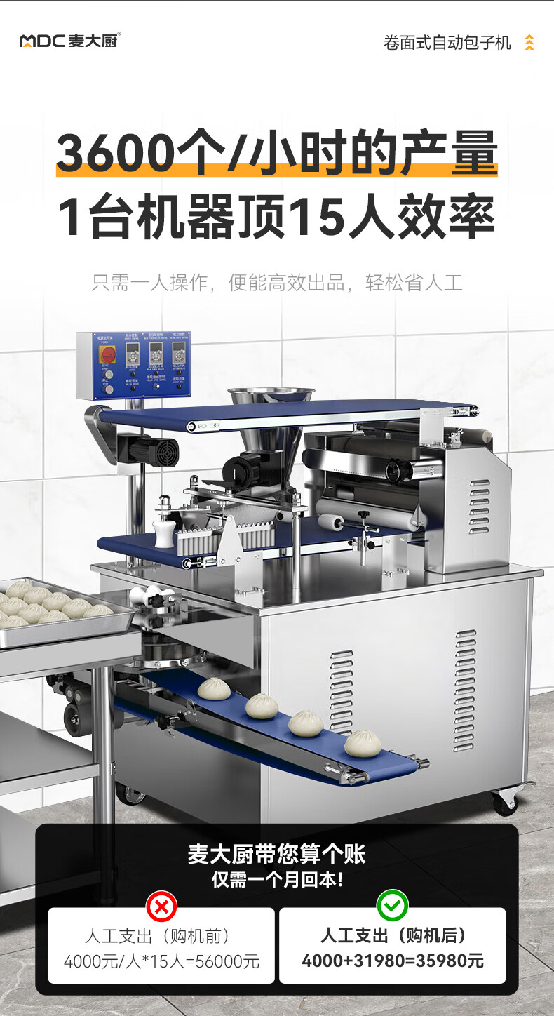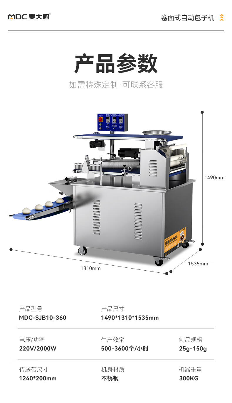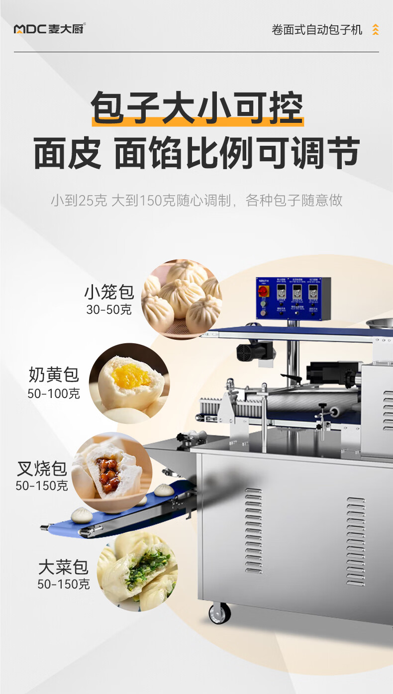 麥大廚旗艦款卷面式單斗全自動數(shù)控包子機(jī)2.0KW