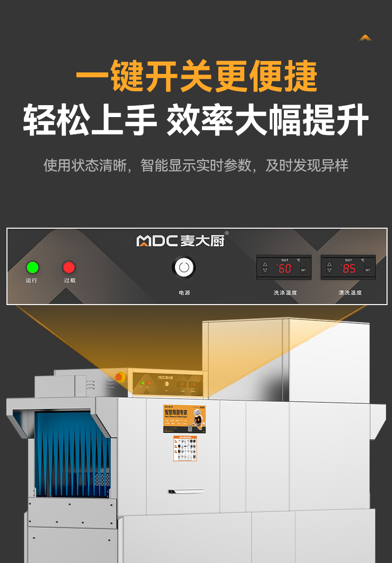 首頁 > 商廚產(chǎn)品 > 洗碗機(jī) > 通道式洗碗機(jī) >麥大廚2.55米通道式單缸雙噴單烘干商用洗碗機(jī)