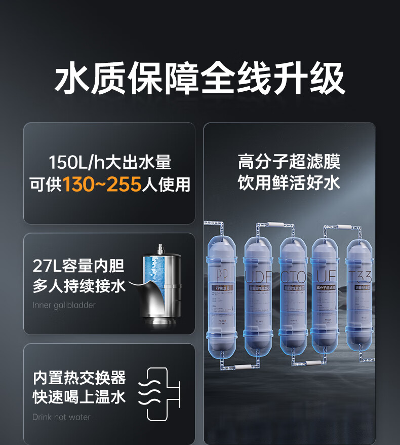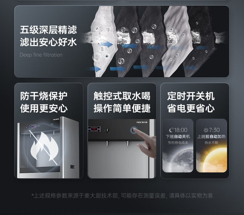 麥大廚3KW柜式觸控飲水機一開二溫快接五級超濾直飲機