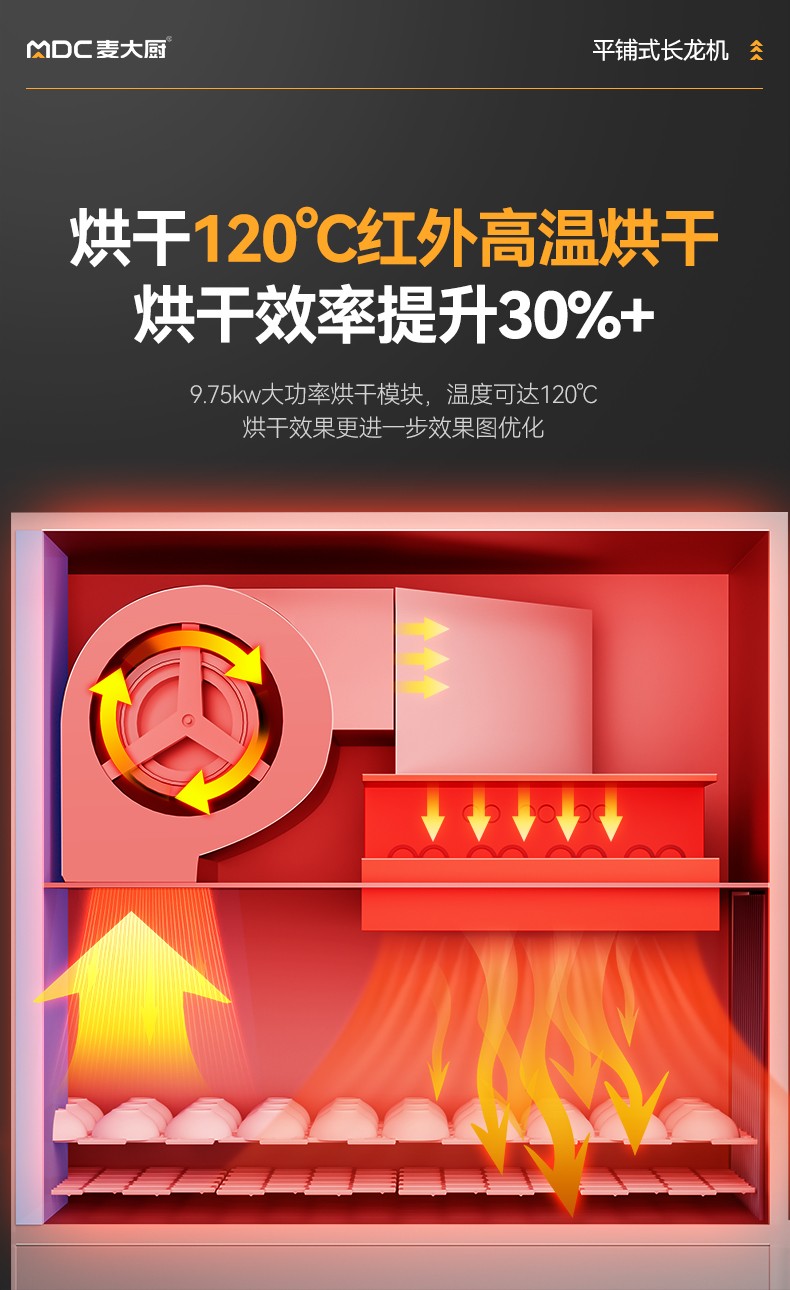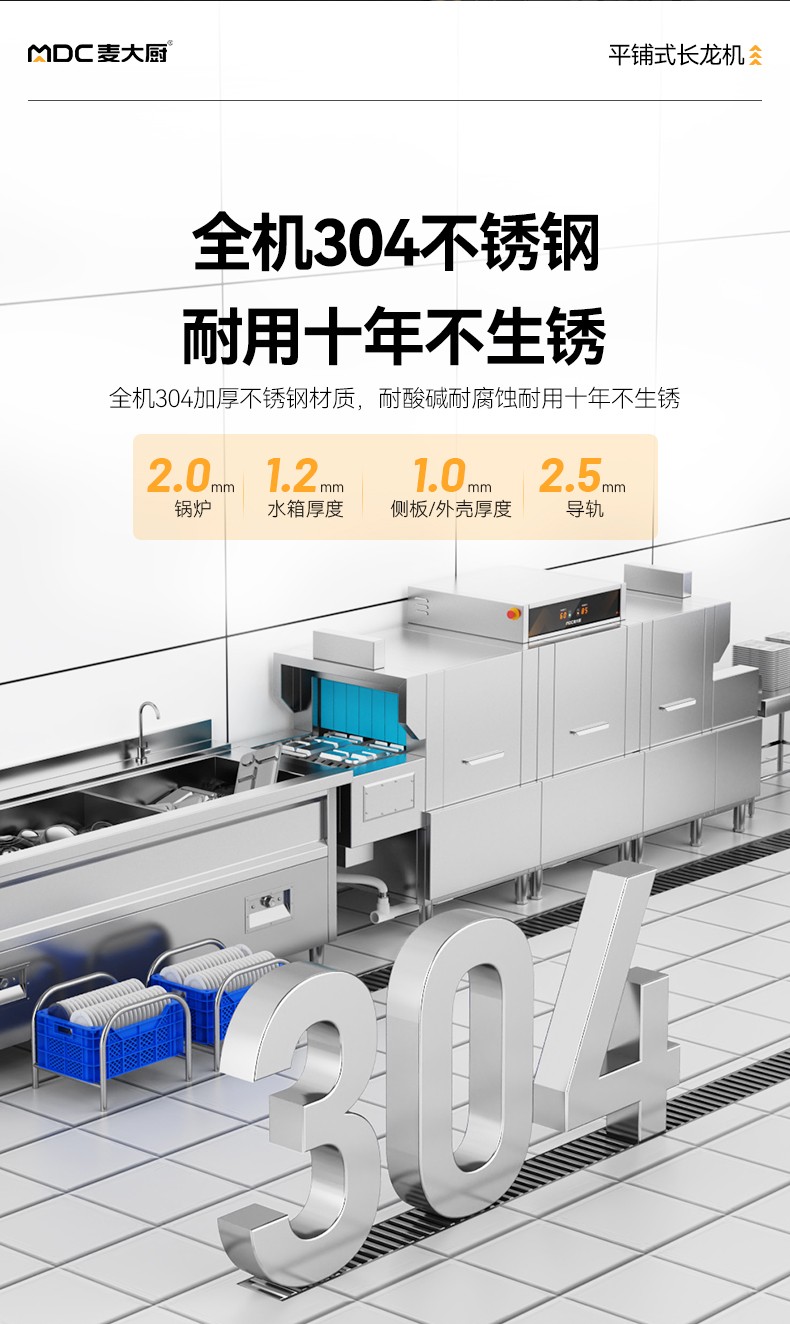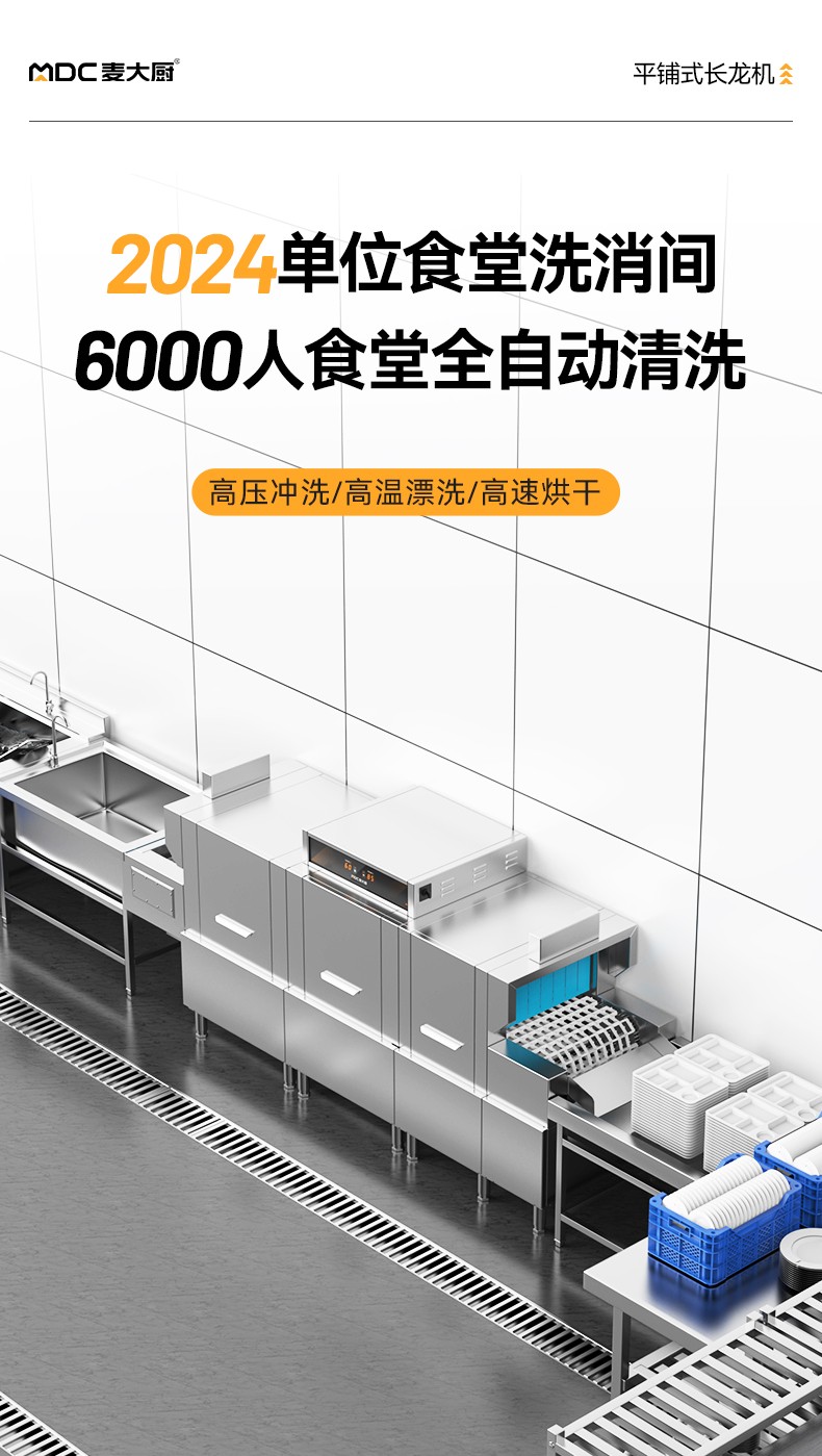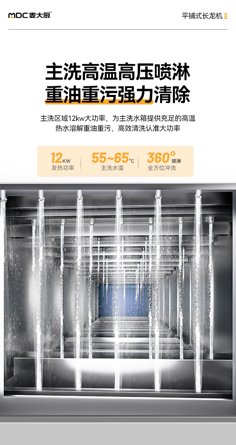 麥大廚3.1m豪華款平放式雙缸雙噴淋學(xué)校食堂洗碗機(jī)