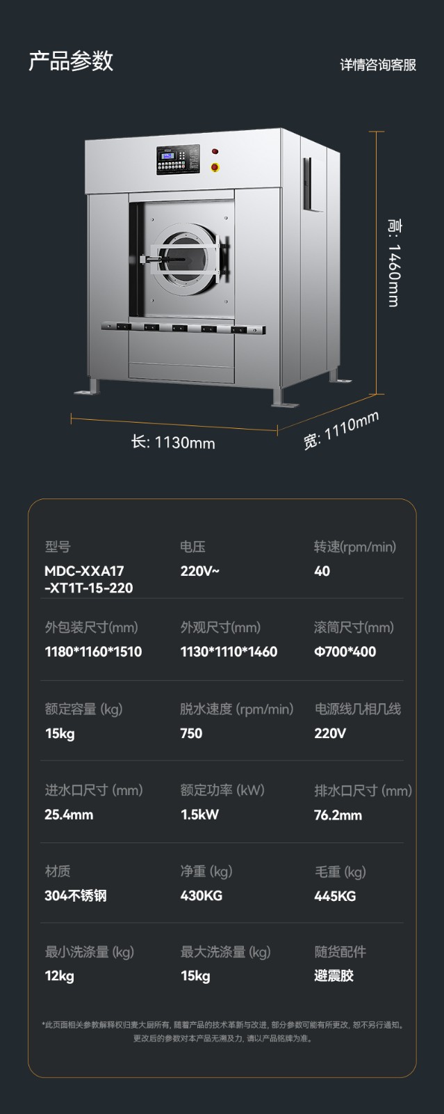 - 更多MDC商用洗脫一體機規(guī)格咨詢在線客服