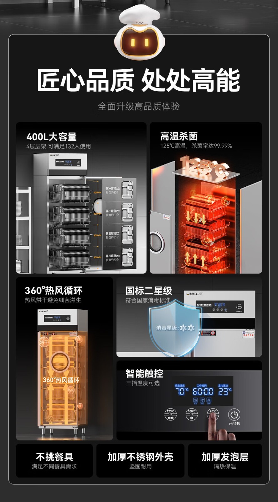 麥大廚智能電腦型單門單控4層熱風(fēng)循環(huán)高溫消毒柜1850W