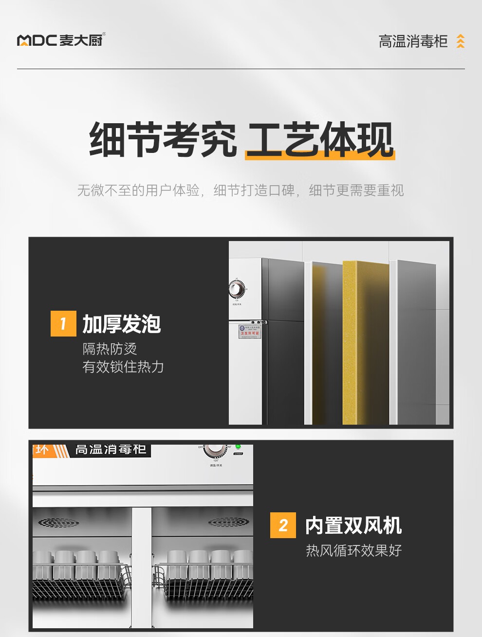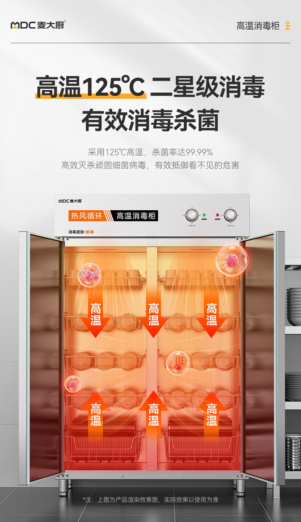 首頁 > 商廚產(chǎn)品 > 消毒柜 > 高溫消毒柜 >麥大廚經(jīng)典旋鈕款雙門單控5層熱風(fēng)循環(huán)高溫消毒柜1550W