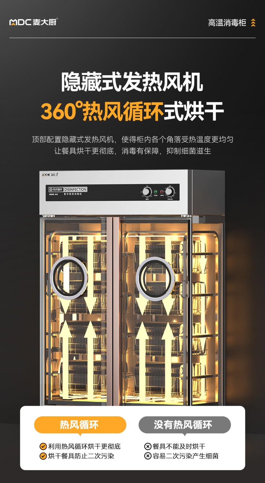 麥大廚豪華旋鈕型雙門單控4層熱風循環(huán)高溫消毒柜3.5KW
