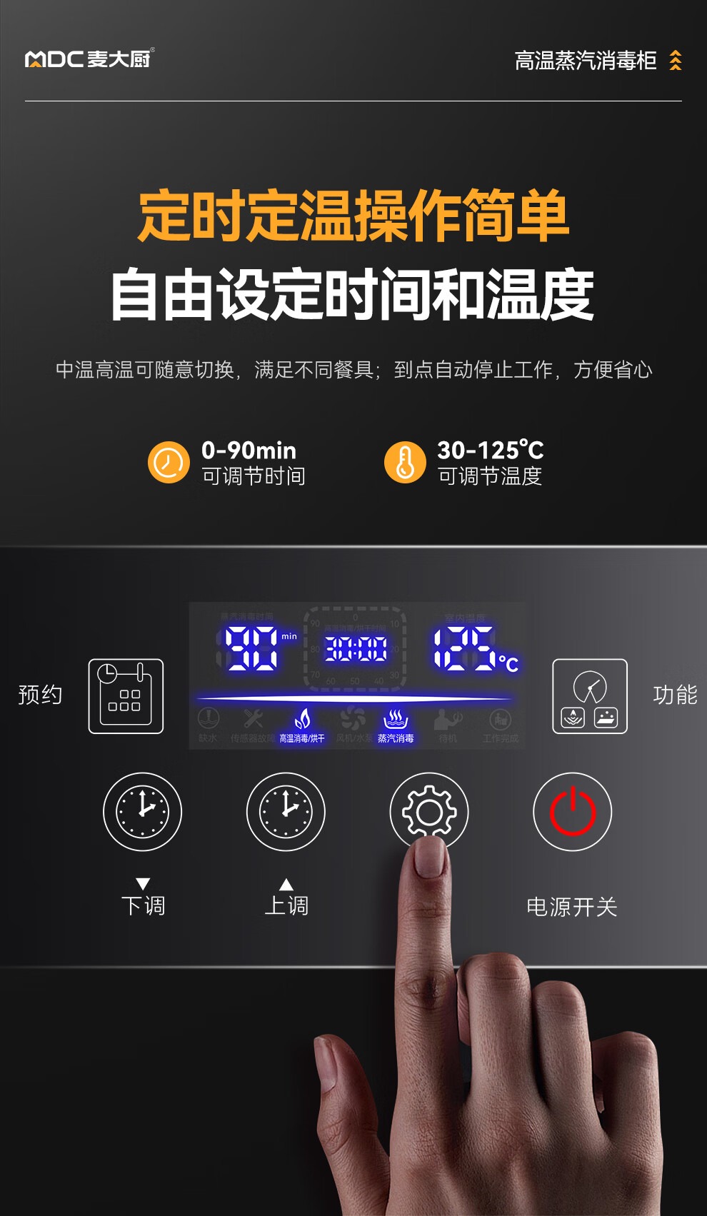 消毒方式:高溫+蒸汽+熱風(fēng)循環(huán)