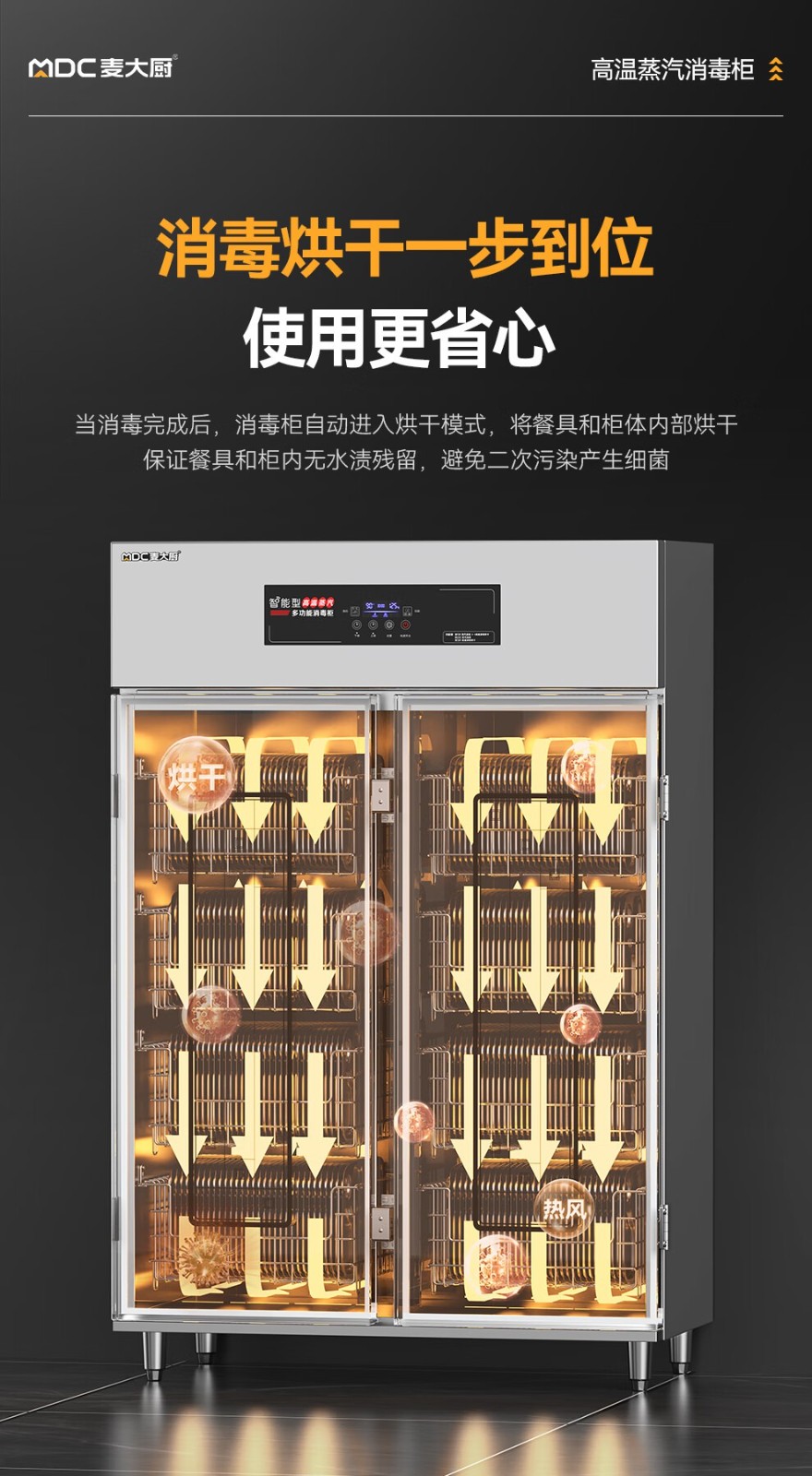 麥大廚智能電腦型雙門單控4層熱風(fēng)循環(huán)高溫蒸汽消毒柜7KW