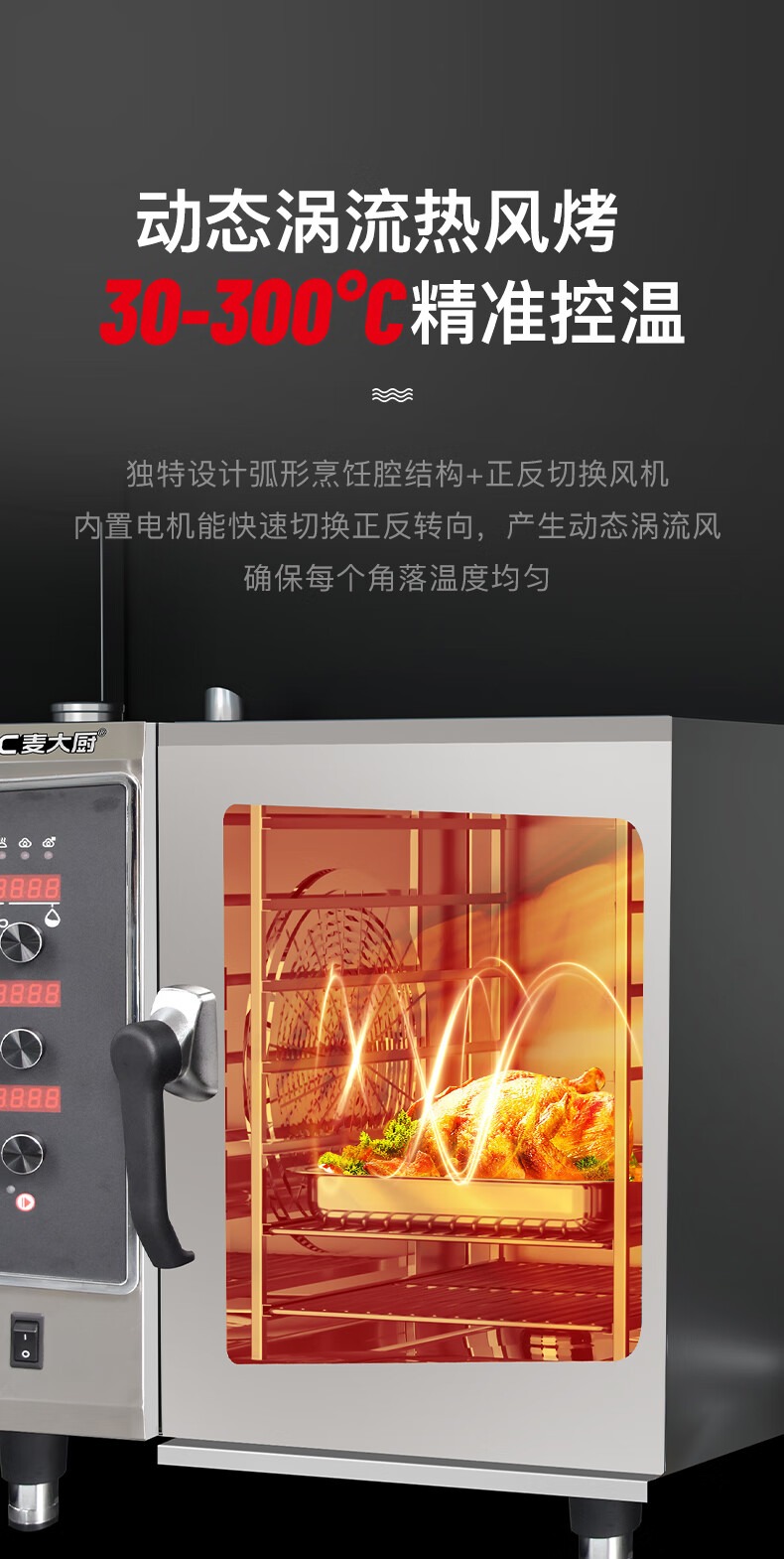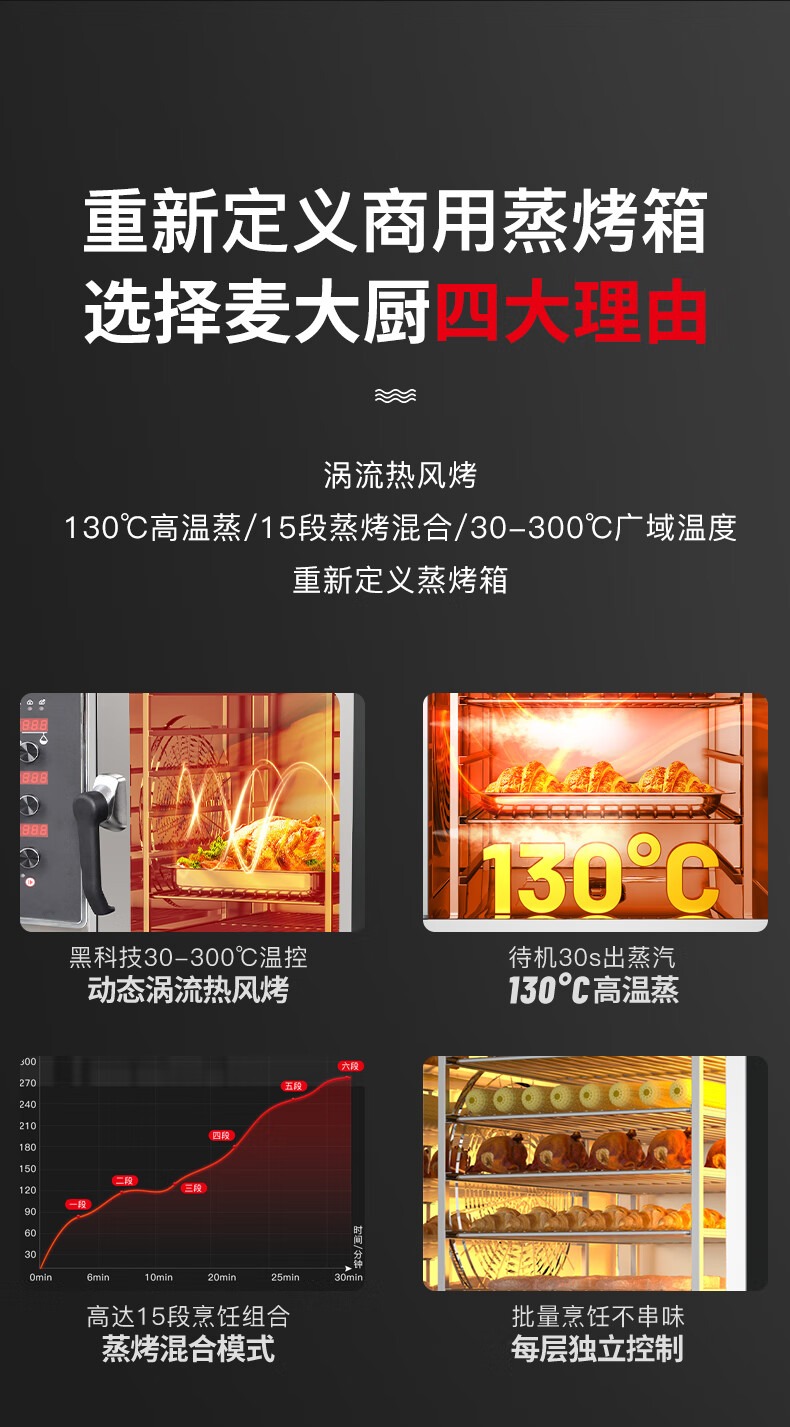 麥大廚220V標(biāo)準(zhǔn)款6.1kw旋鈕式四層萬能蒸烤箱