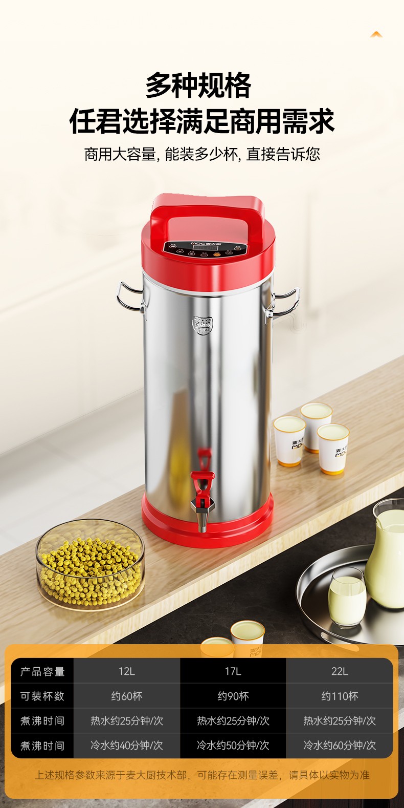 麥大廚商用經(jīng)濟款豆?jié){機分體加熱磨漿機12L