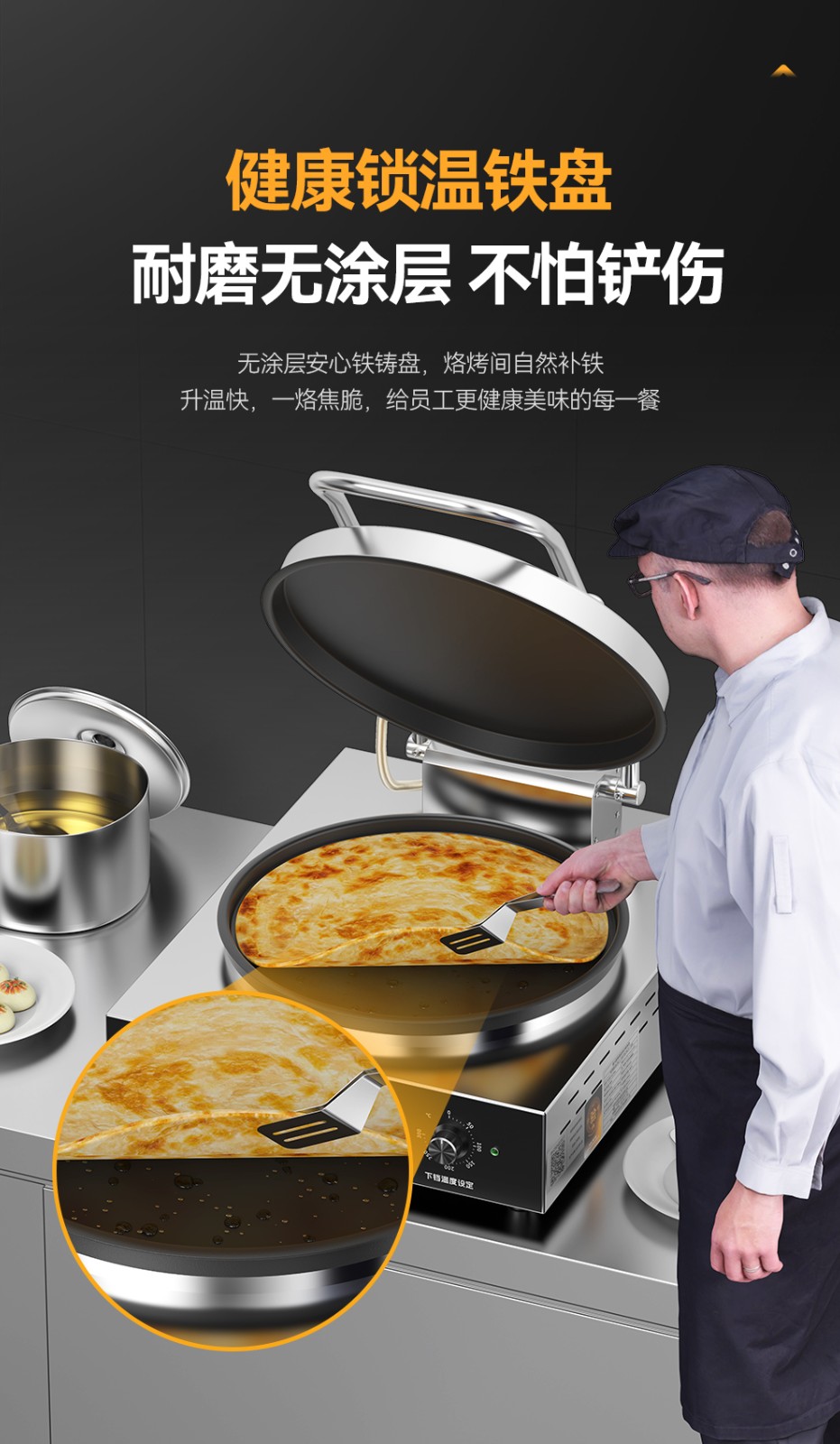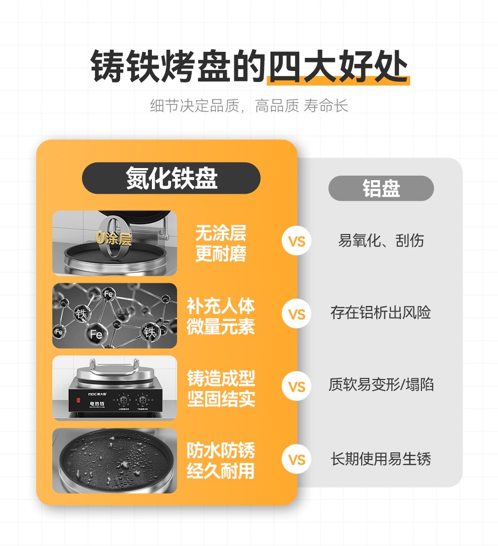 麥大廚臺式旋鈕款鐵鍋商用電餅鐺大型雙面加熱