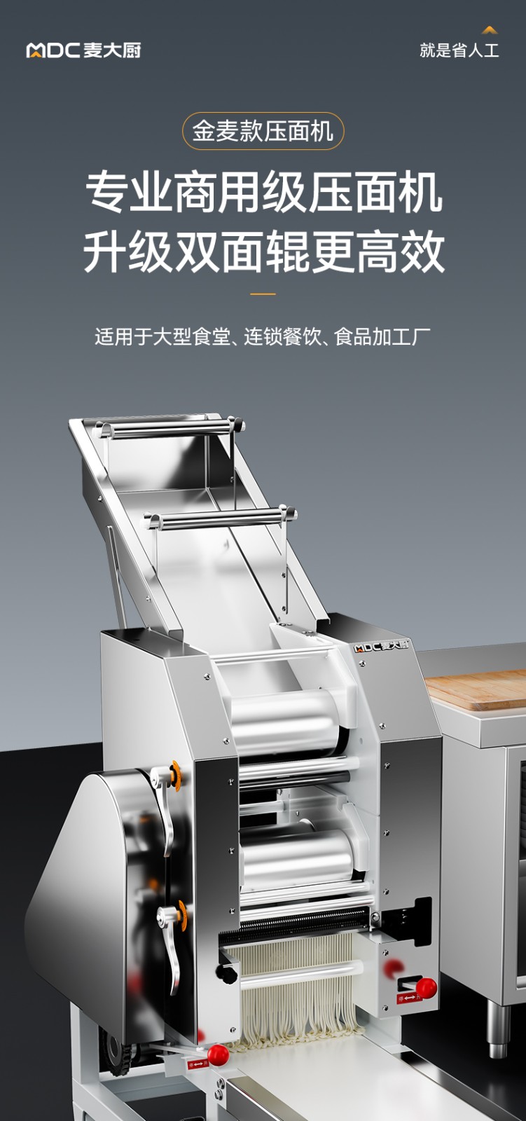麥大廚金麥款3kW雙滾軸壓面條機(jī)配兩把刀商用