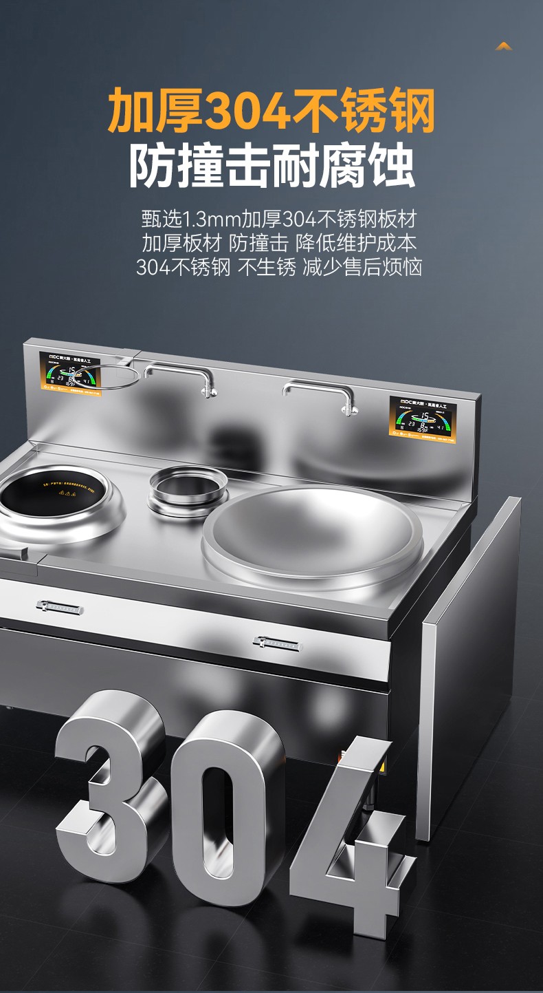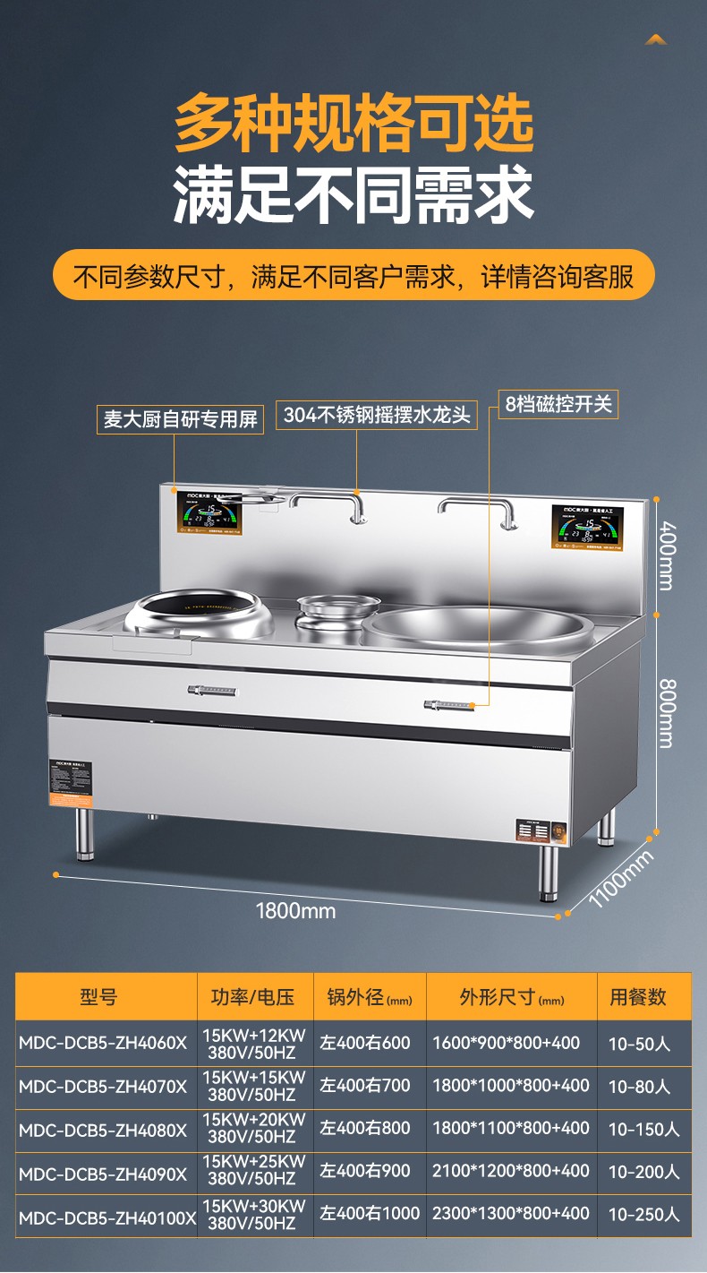 首頁(yè) > 商廚產(chǎn)品 > 電磁灶 > 大小組合爐 >麥大廚星麥款左400右800大小組合爐商用