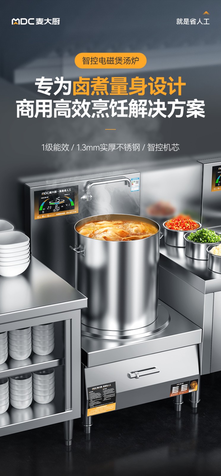 首頁 > 商廚產(chǎn)品 > 電磁灶 > 單頭低湯爐 >麥大廚大功率學(xué)校單位食堂廚房設(shè)備商用單頭低湯爐15KW